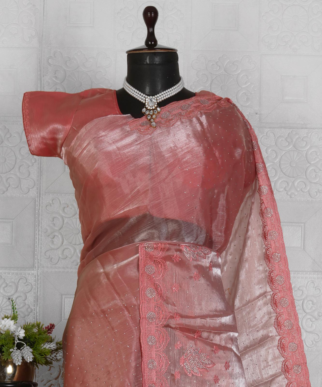 Organza embroidery saree
