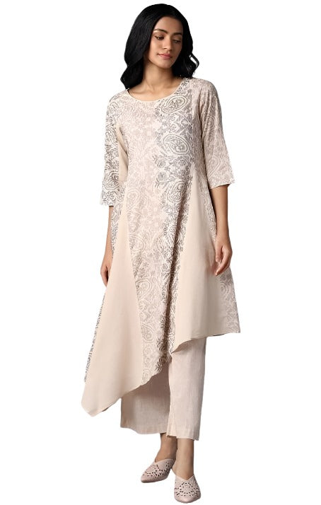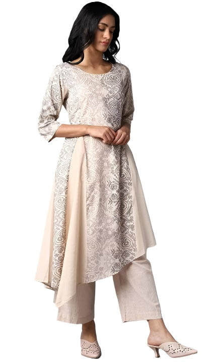 Asymmetric kurta In Floral Print And Round Neck in Berlin