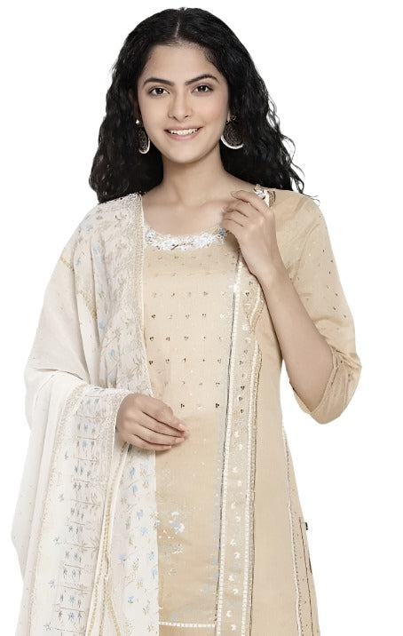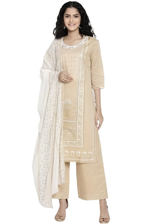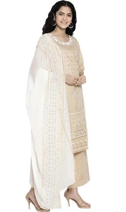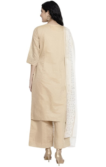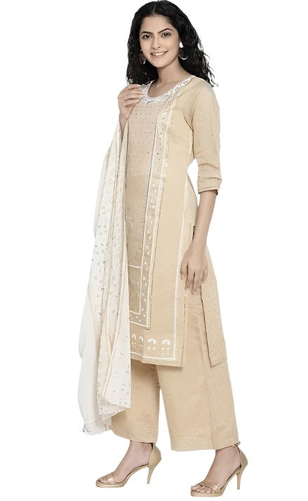 Beige Printed kurta Palazzo Dupatta Set in Essen