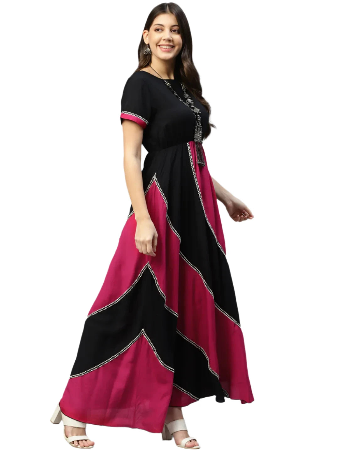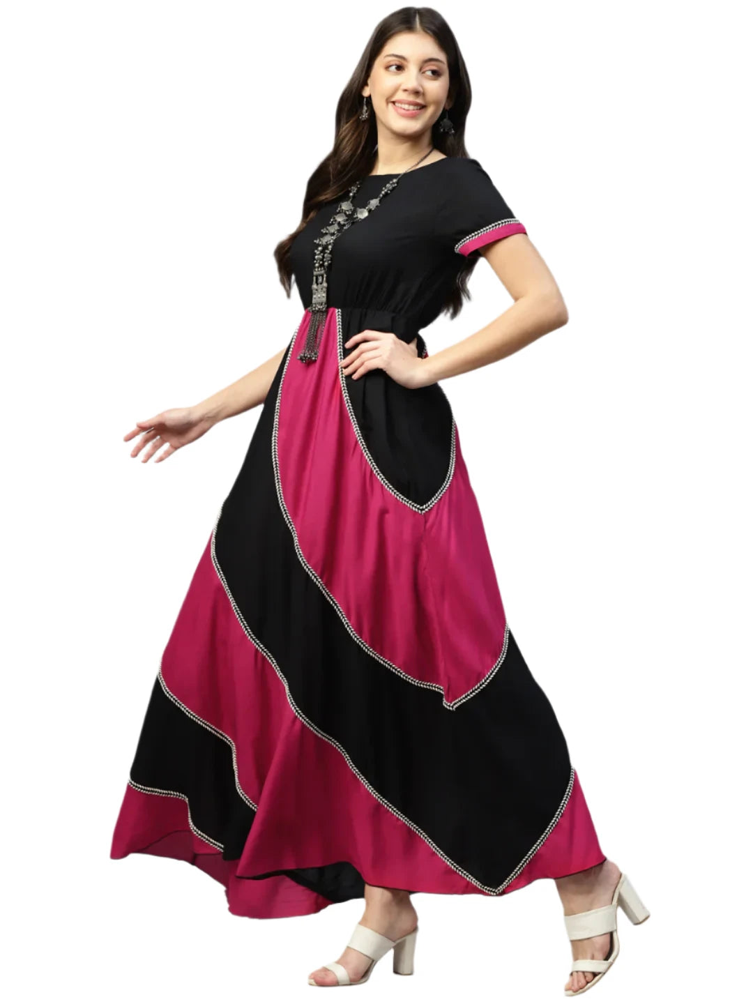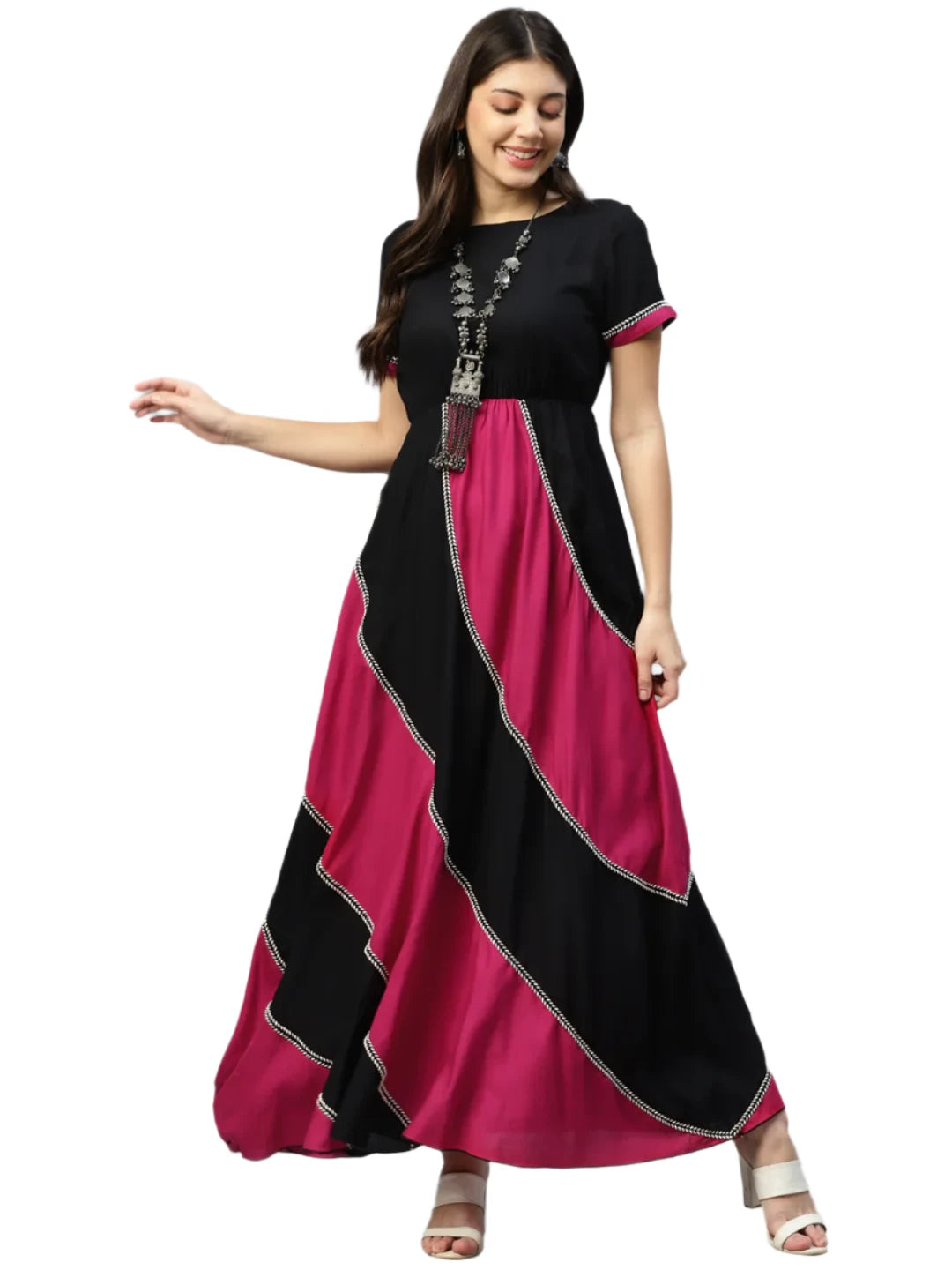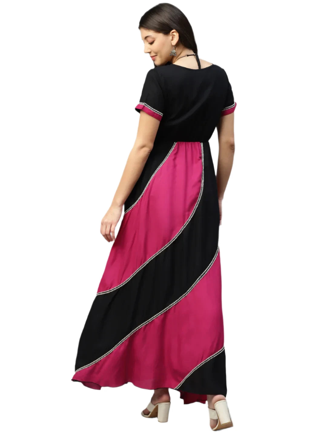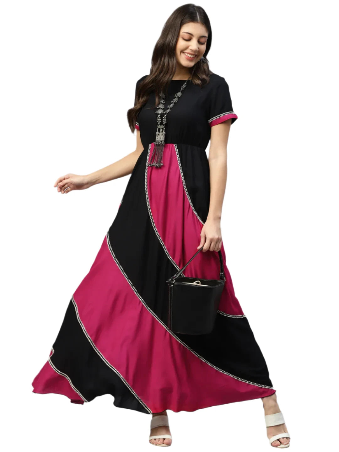 Black With Magenta Colour Blocked Women Maxi in Berlin