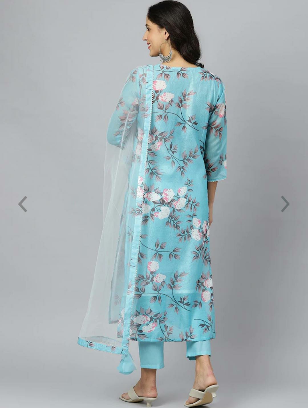 Blue Floral Printed Kurta With Trousers with Dupatta(Indian Outfit)