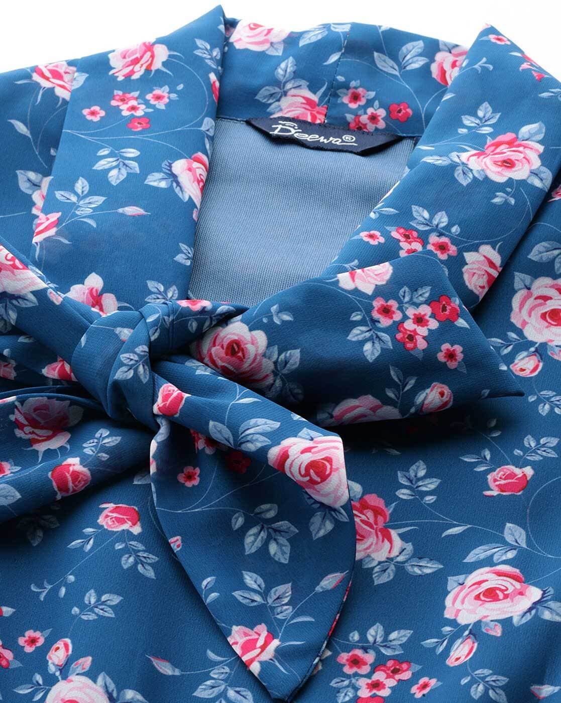- Blue floral printed fit & flare dress