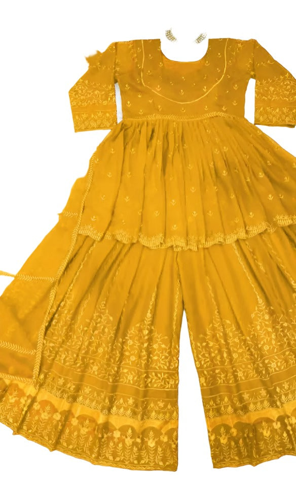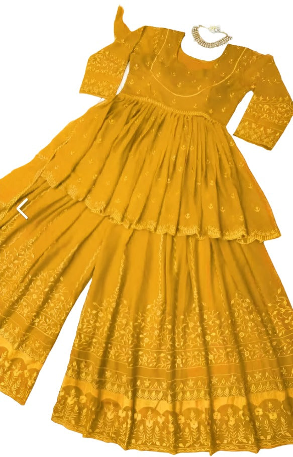 Yellow georgette thread embroidery work designer palazzo suit in Essen