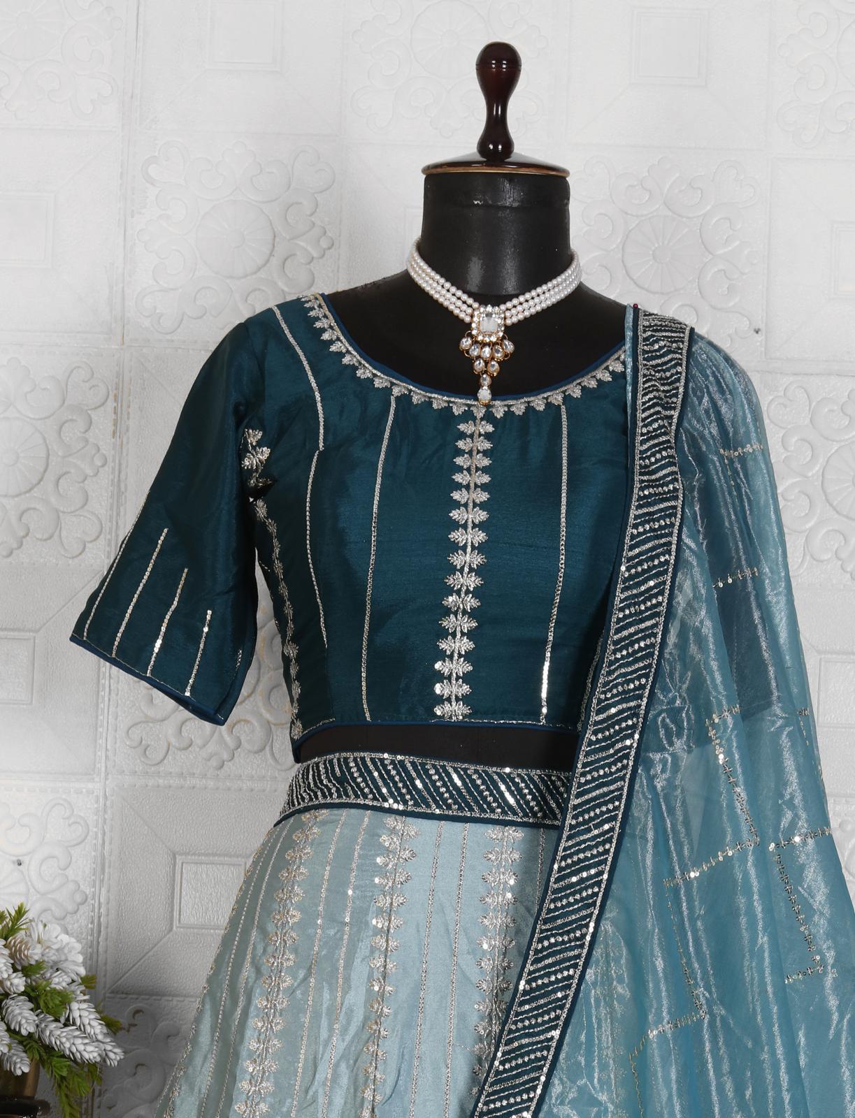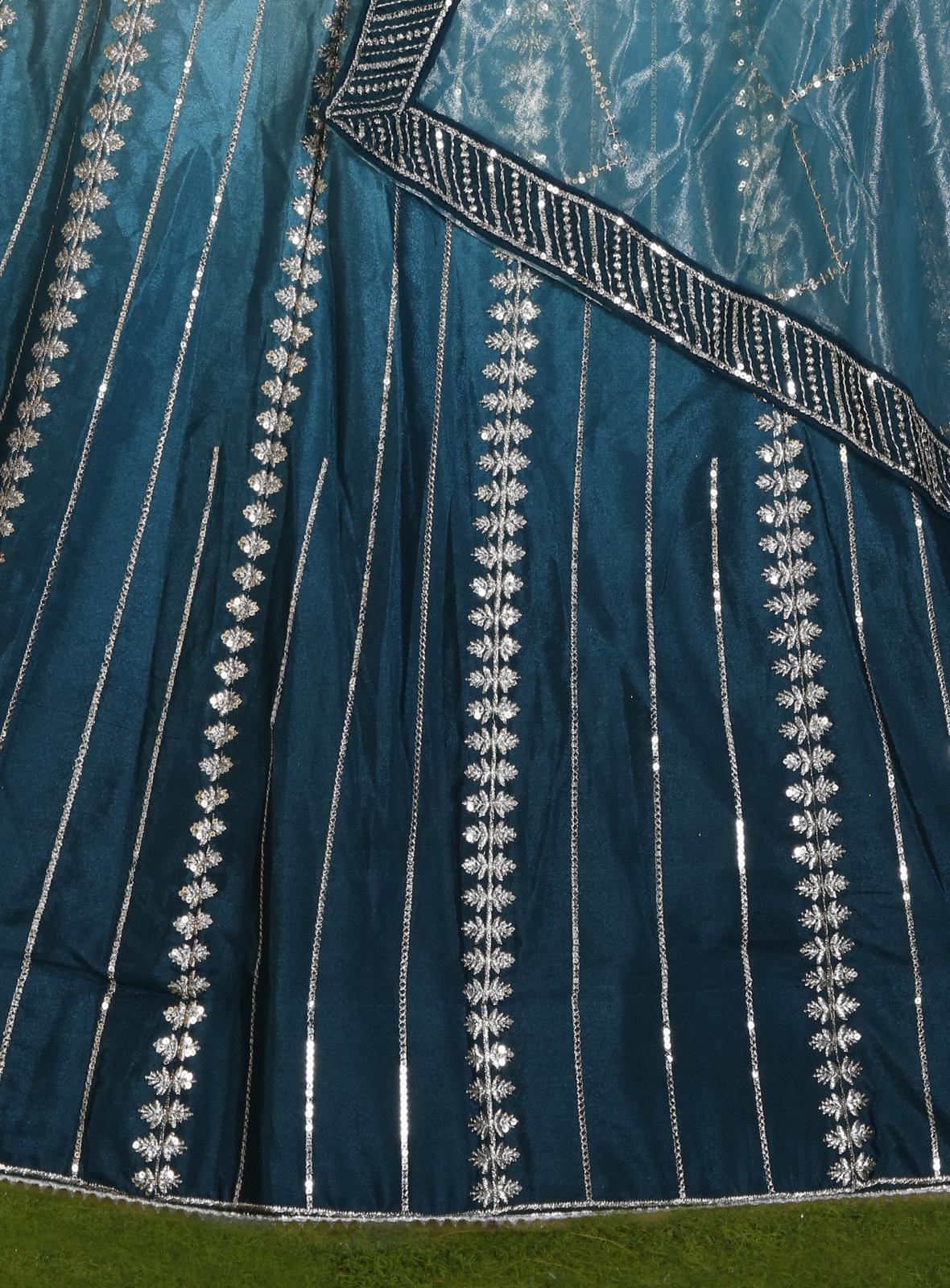 Blue Sequins Embroidered Satin Lehenga Choli in Munich
