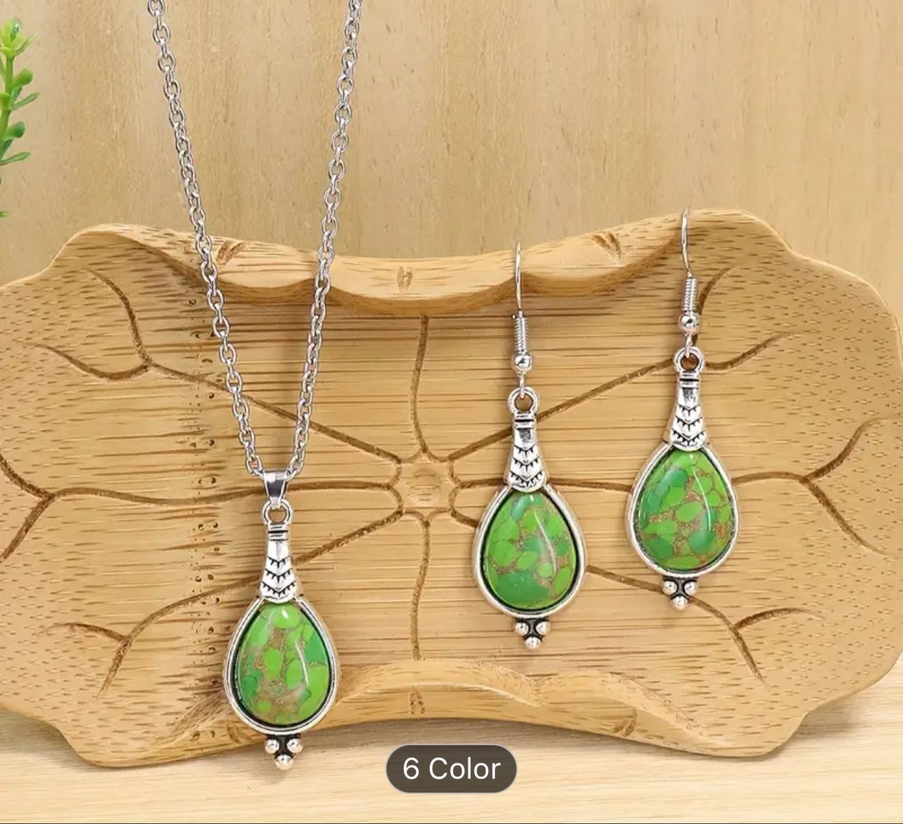Bohemian Vacation Style Ancient Silvery Water Drop Shape Earrings