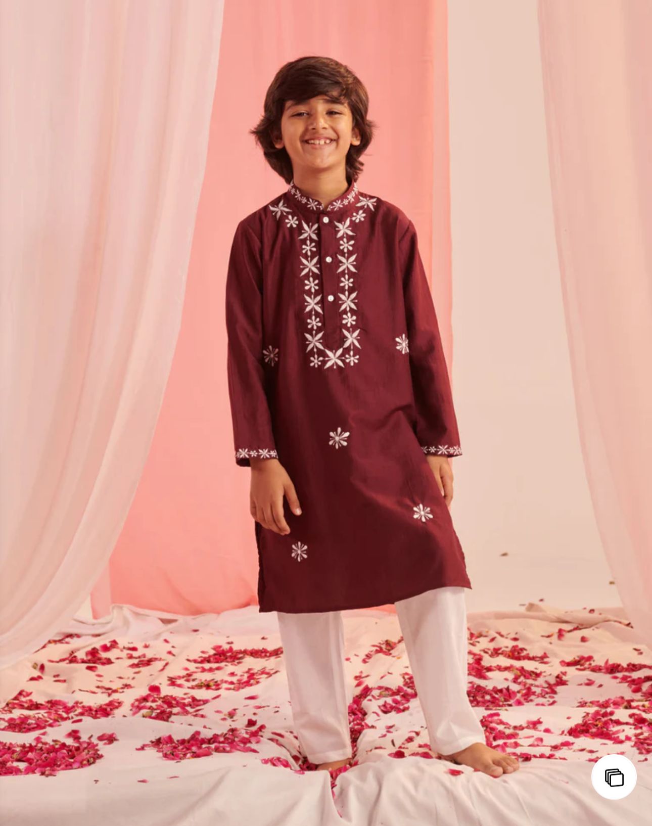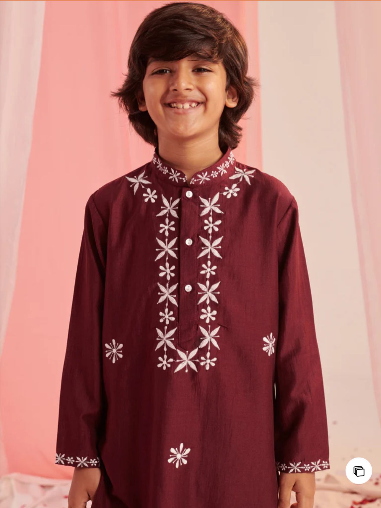 Boys Embroidered Regular Kurta with Pyjamas in Munich