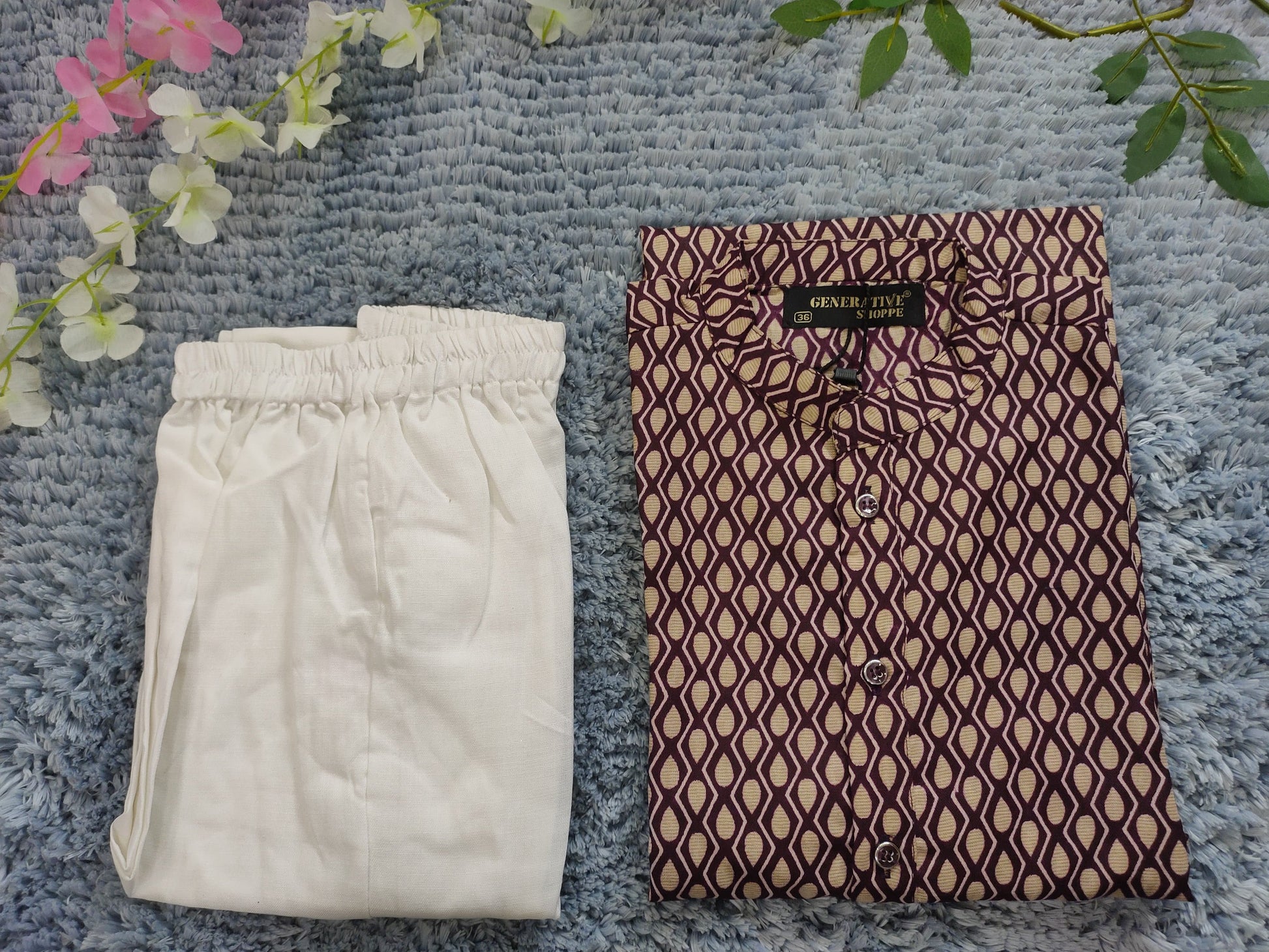 Boys Ethnic Motifs Printed Pure Cotton Kurta with Pyjamas in Berlin