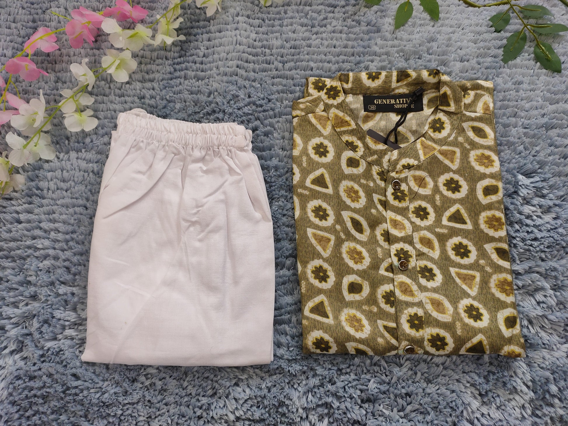 Boys Ethnic Motifs Printed Pure Cotton Kurta with Pyjamas in Berlin