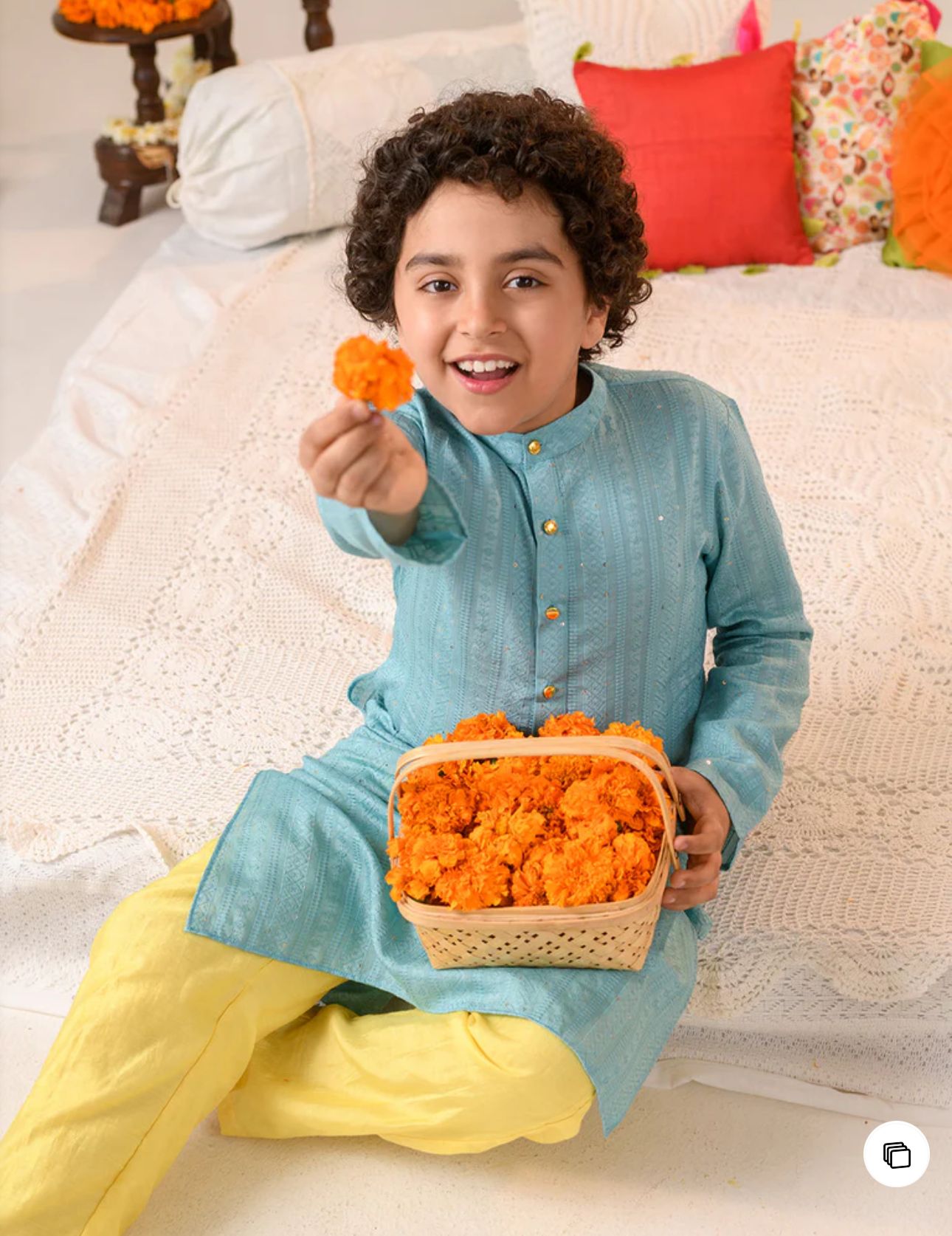 Boys Ethnic Motifs Printed Regular Pure Cotton Kurta With Pyjamas