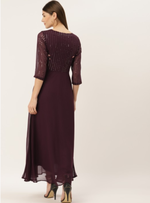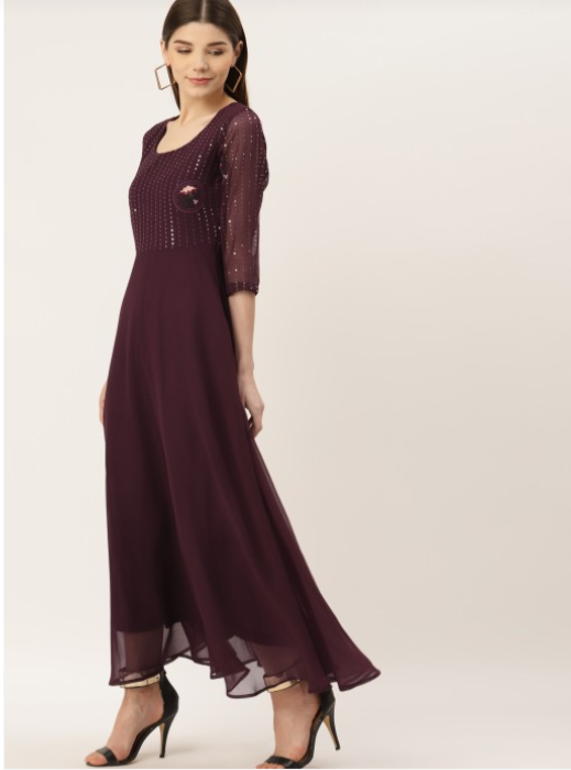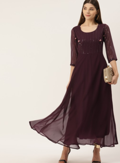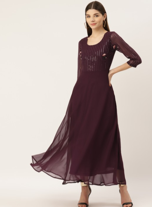 Burgundy Embellished Georgette Maxi Dress in Germany