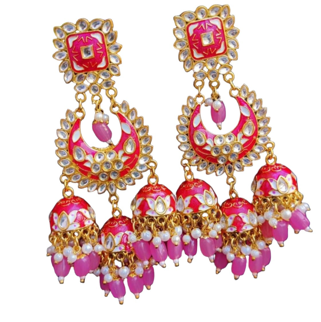 Chandbali Earrings(Pink Color)