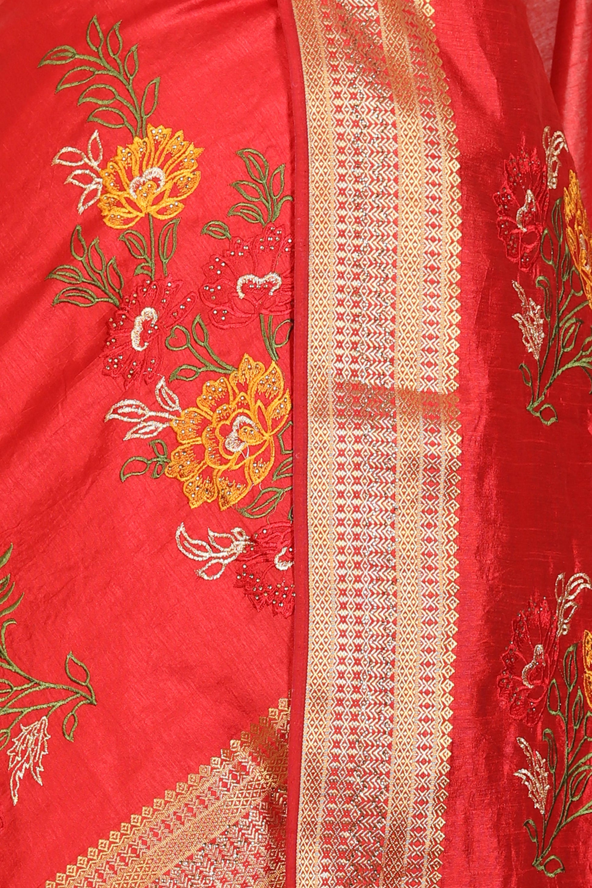 Chanderi Silk Saree with stitched blouse