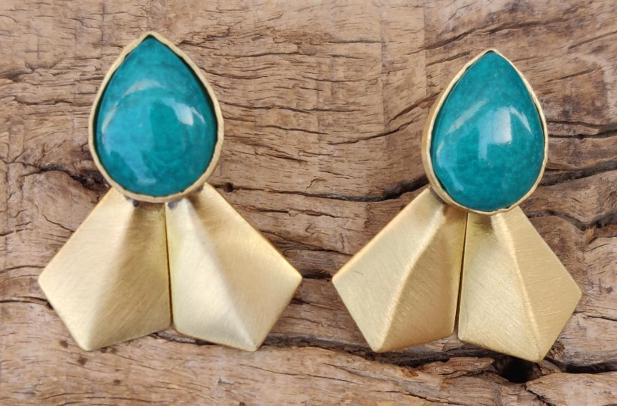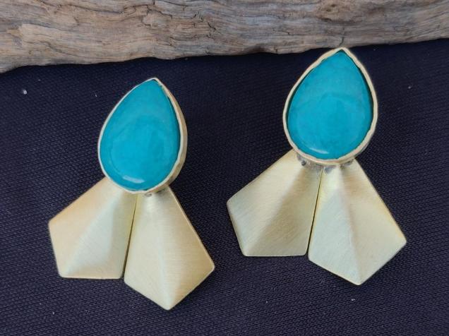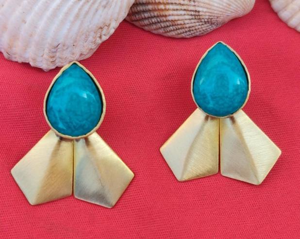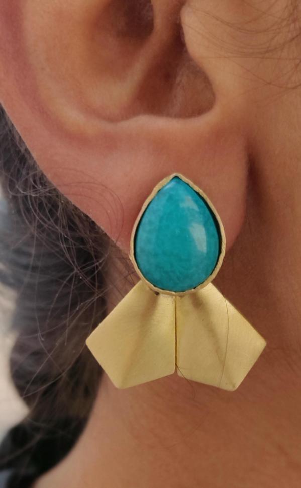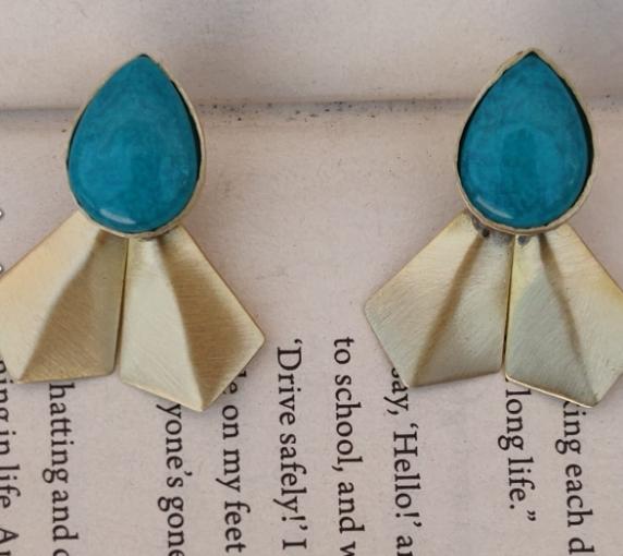 Contemporary Brass Handmade Resin Stone Light weight Designer Earring for Women and Girls