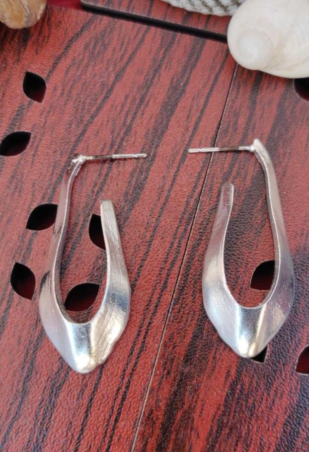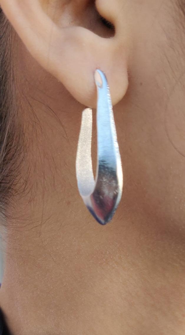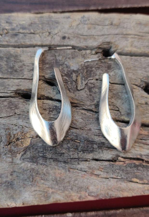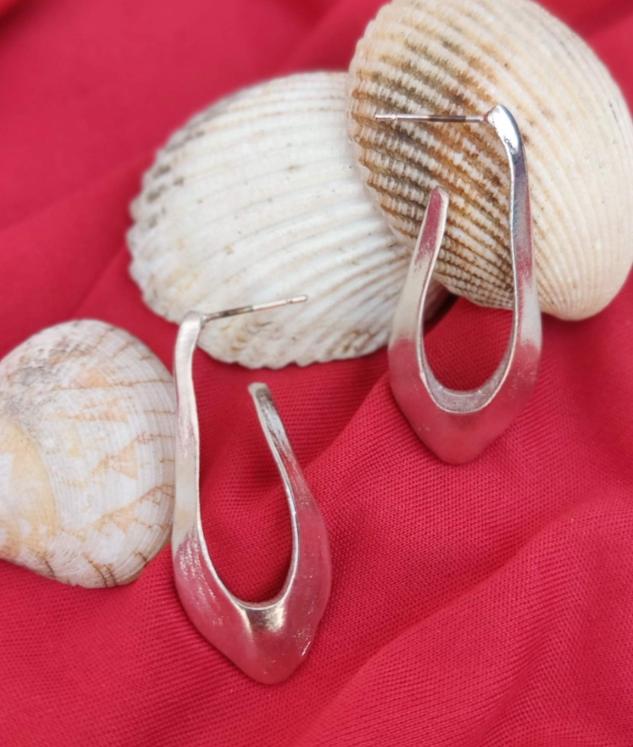 Contemporary Brass Handmade Silver Tone Bold Fluid Shape Earrings