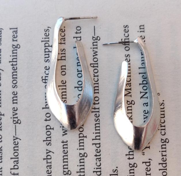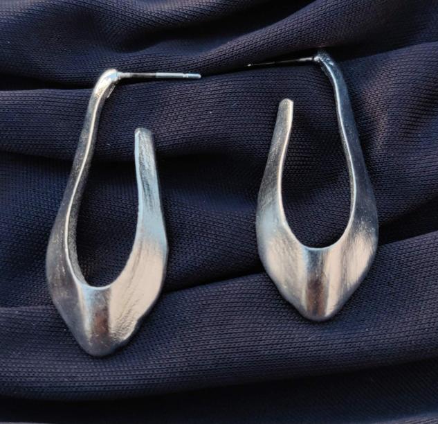 Contemporary Brass Handmade Silver Tone Bold Fluid Shape Earrings in Berlin