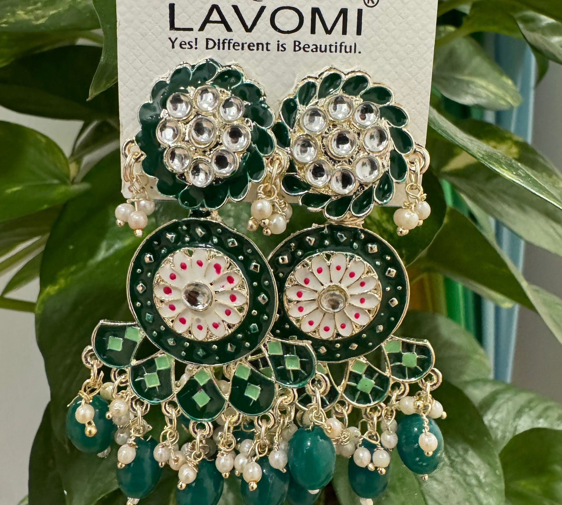 Gold-Plated Contemporary Meenakari Kundan Drop Earrings