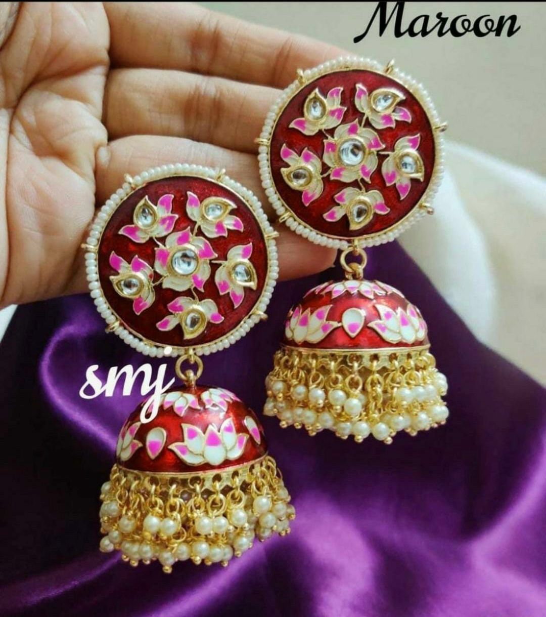 Jhumka Earrings(Maroon Color)