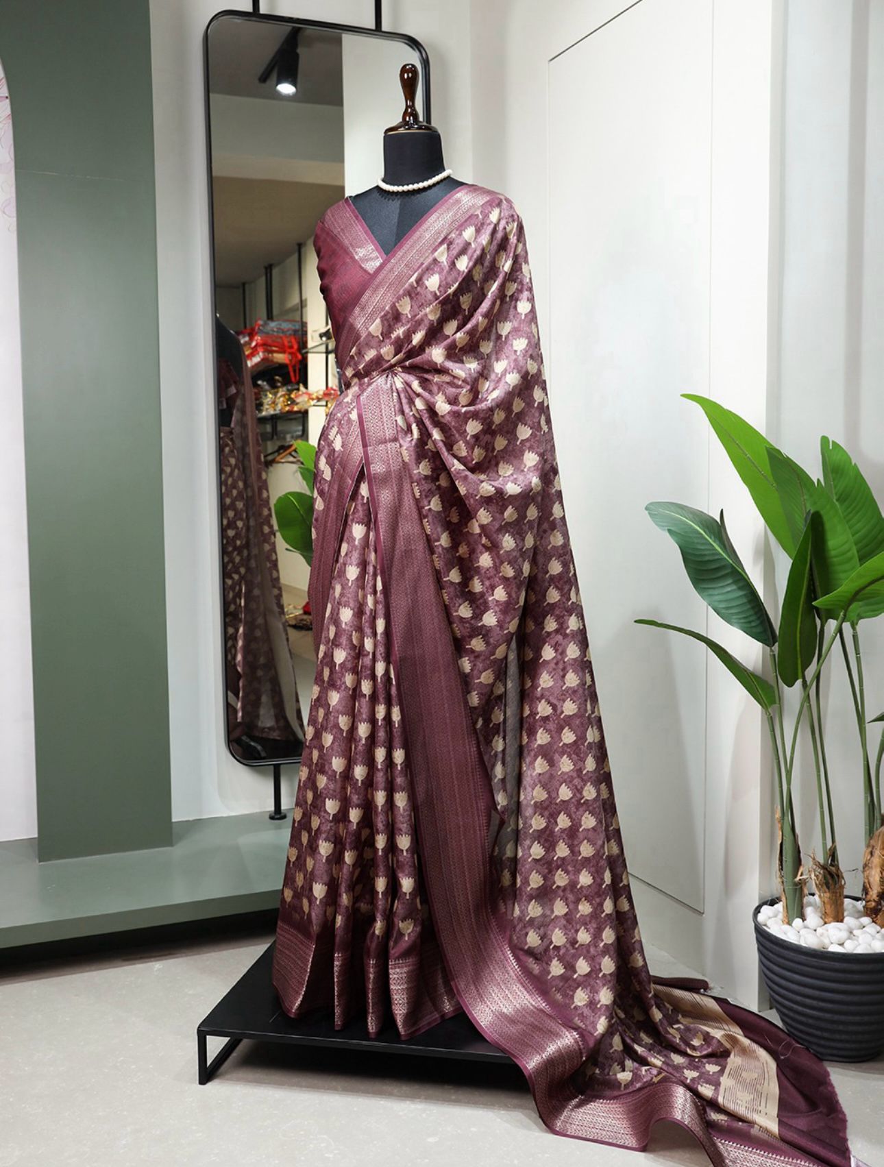 The best way to represent your classy look with this spectacular dola silk saree which enriched with weaving zari border ✨