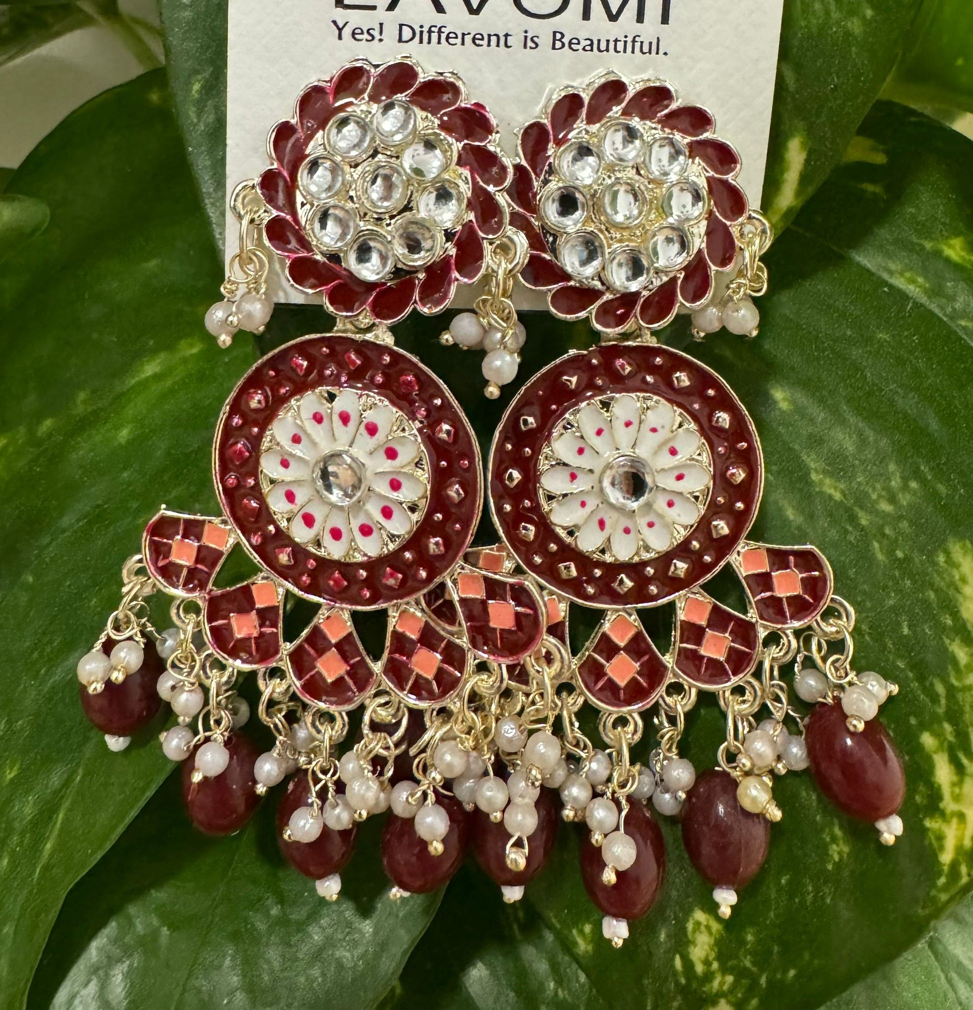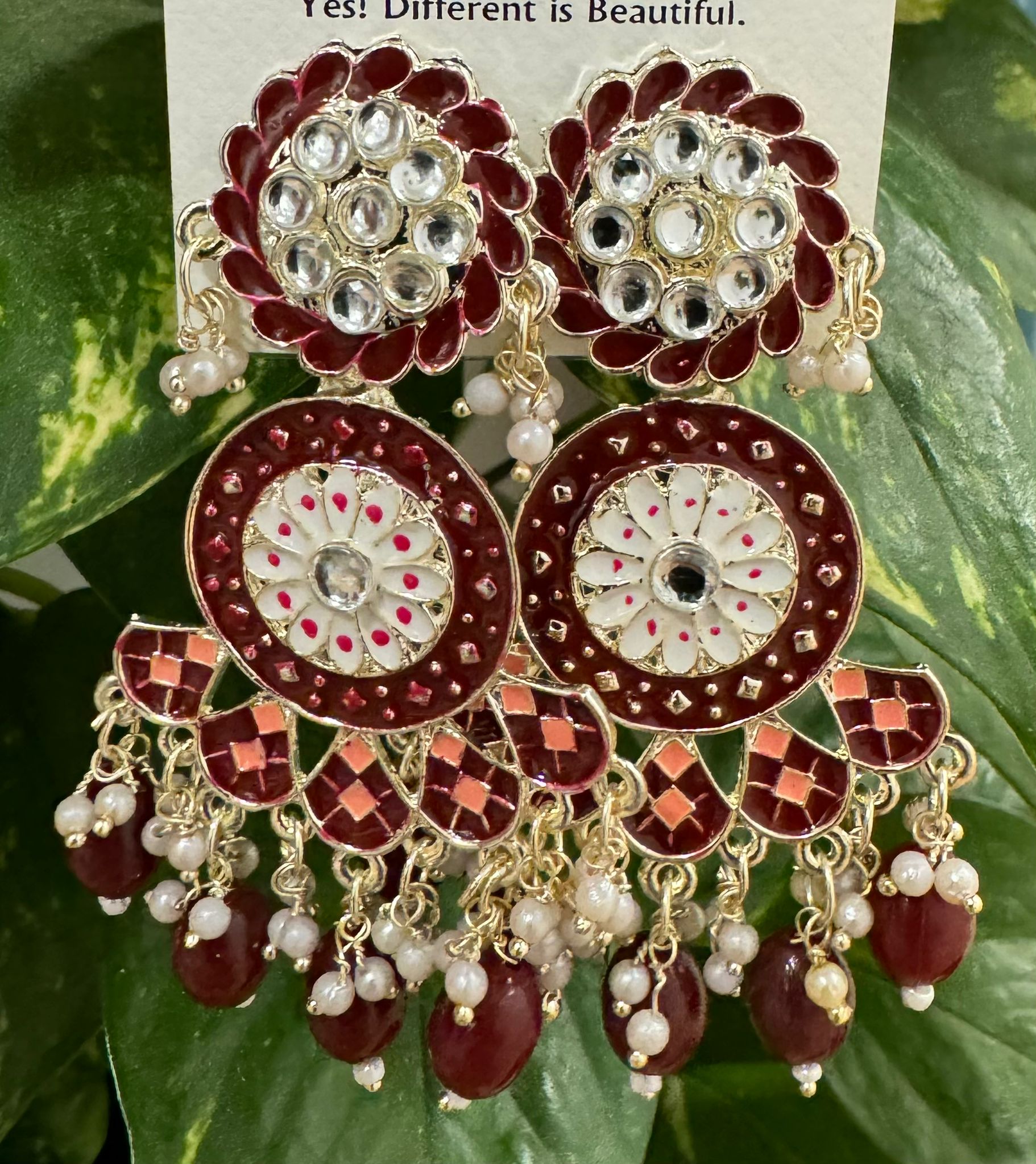 Gold-Plated Contemporary Meenakari Kundan Drop Earrings
