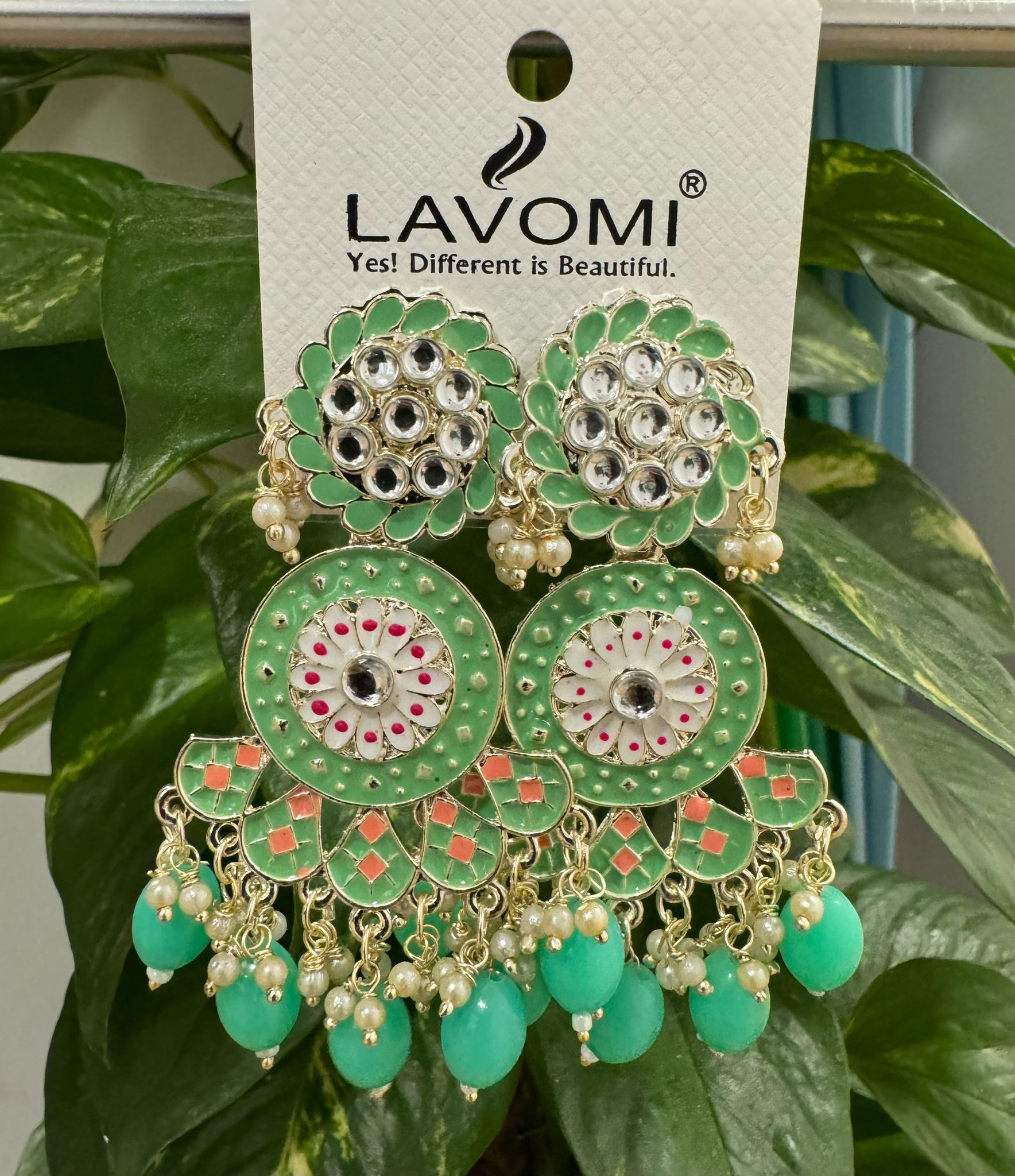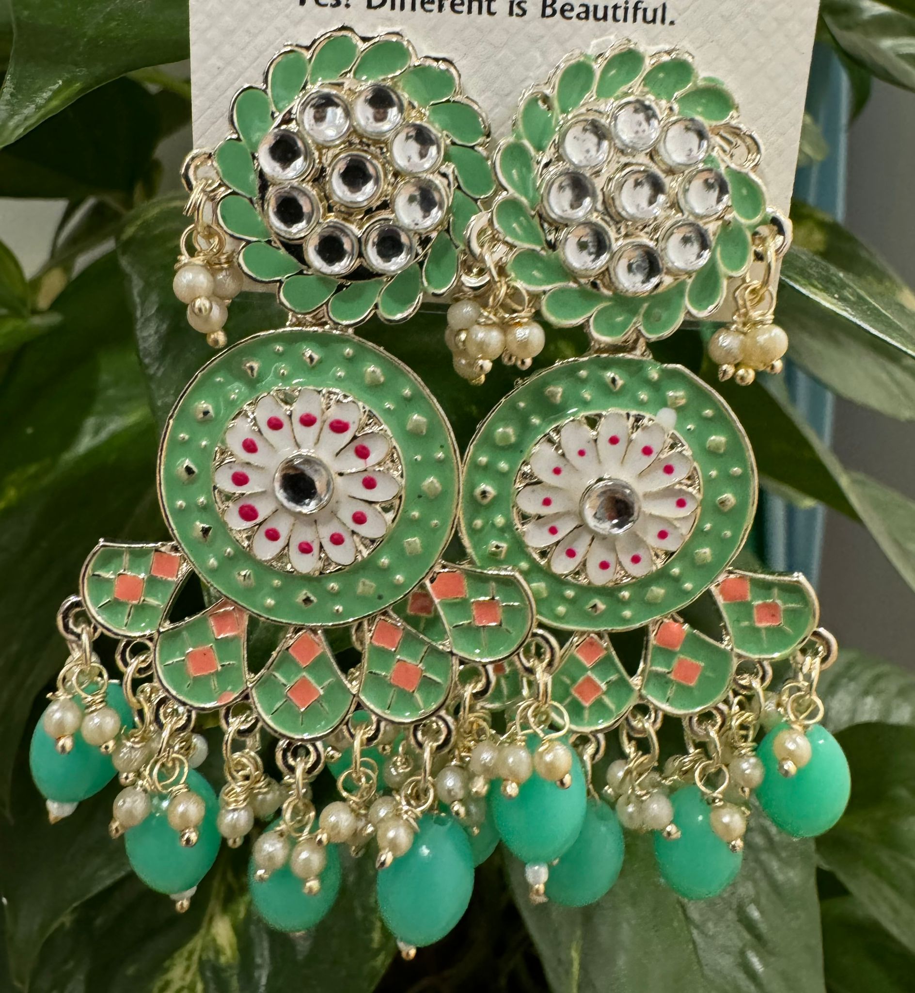 Gold-Plated Contemporary Meenakari Kundan Drop Earrings