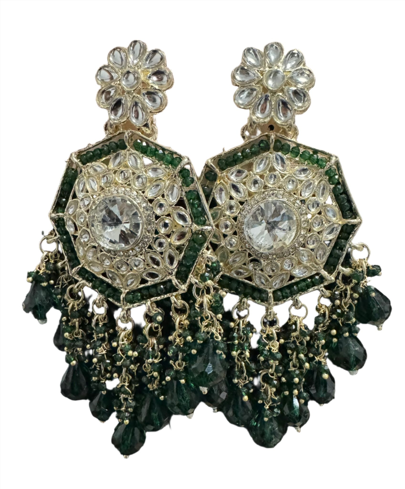 Gold Plated Kundan Pearl Chandbali Long Dangle Earrings Jewellery