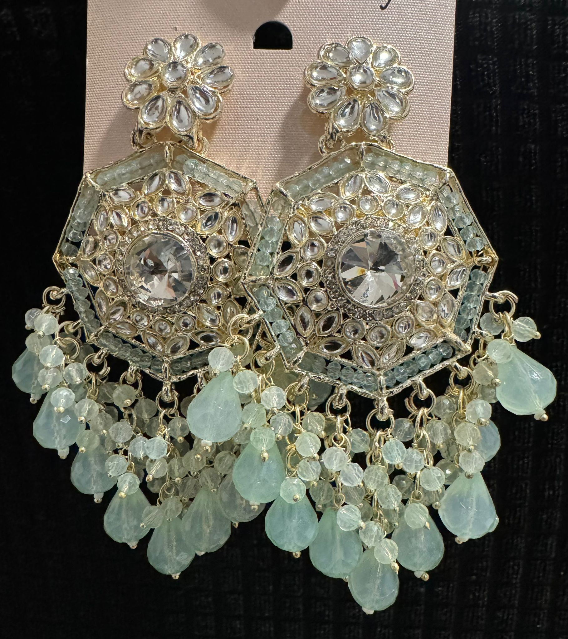 Gold Plated Kundan Pearl Chandbali Long Dangle Earrings Jewellery