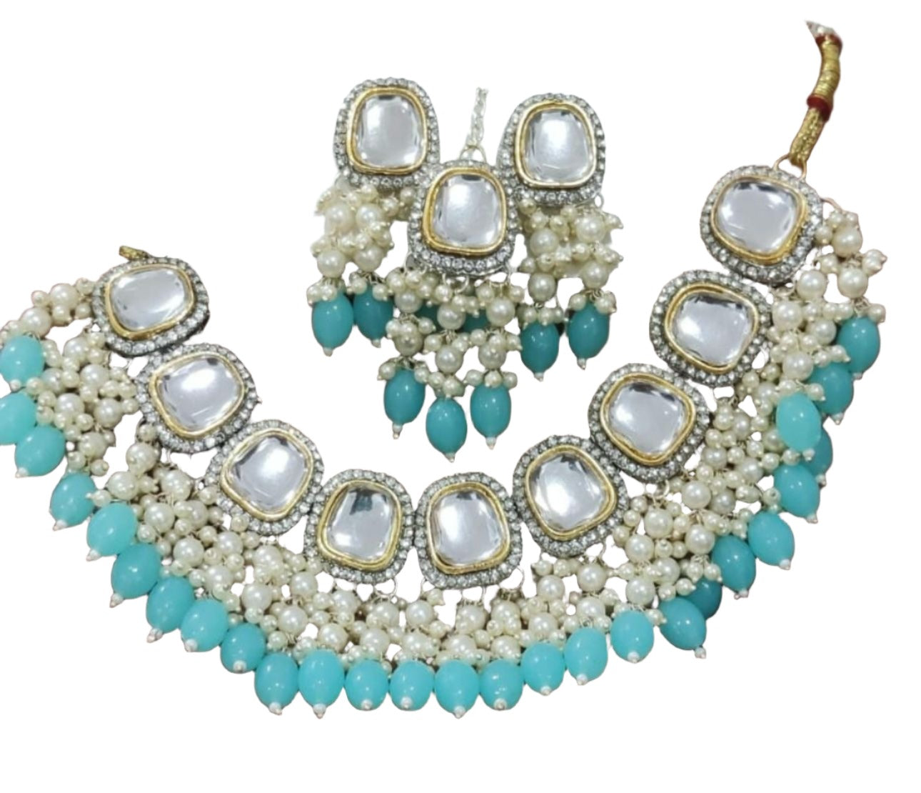 Gold Plated Polki Revers ad Necklace Set Earrings & Maang Tikka Jewellery Set