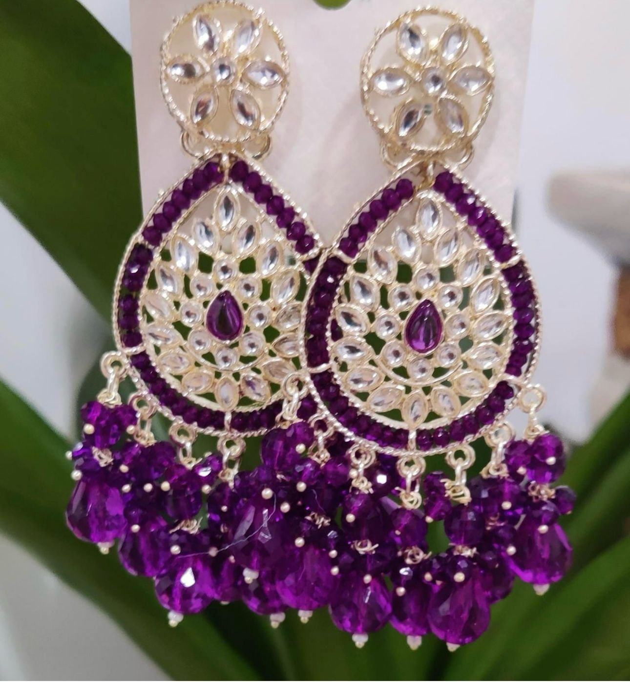 Gold-Plated Stone Studded & Beaded Contemporary Chandballi