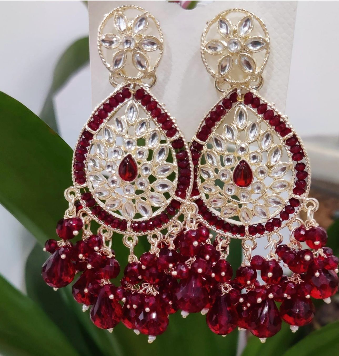 Gold-Plated Stone Studded & Beaded Contemporary Chandballi