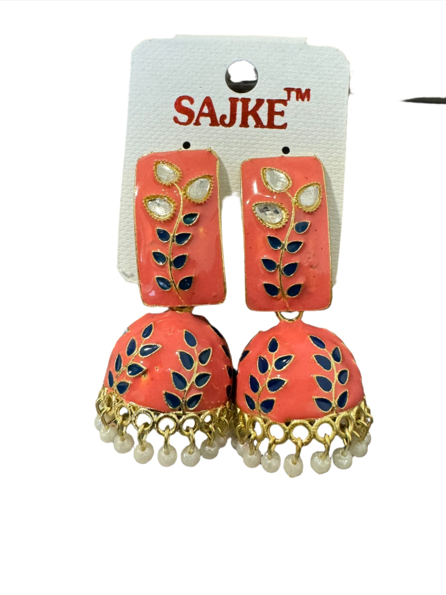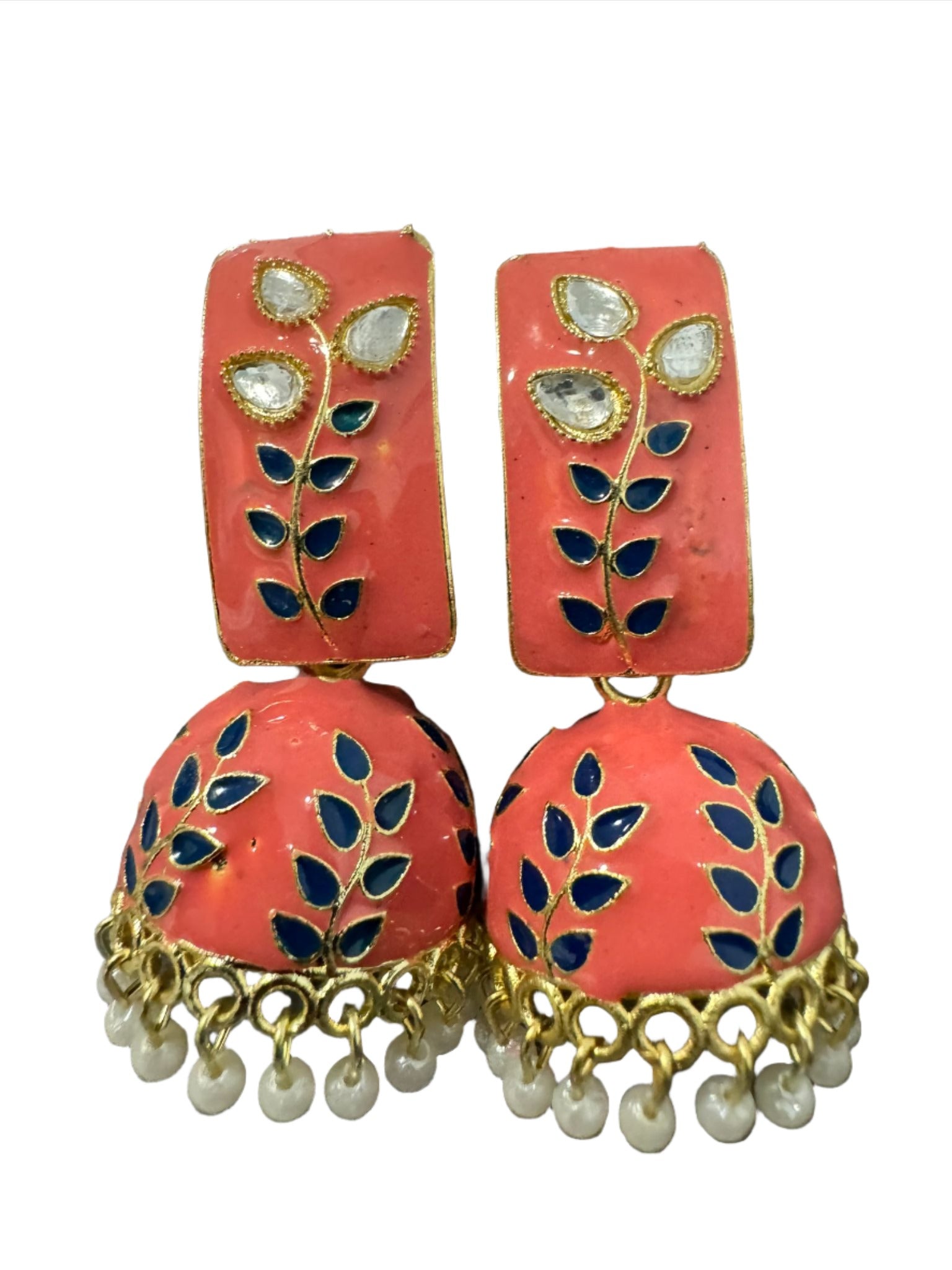 Floral Handcrafted Enamel Kundan Pearl Jhumki Earrings for Women