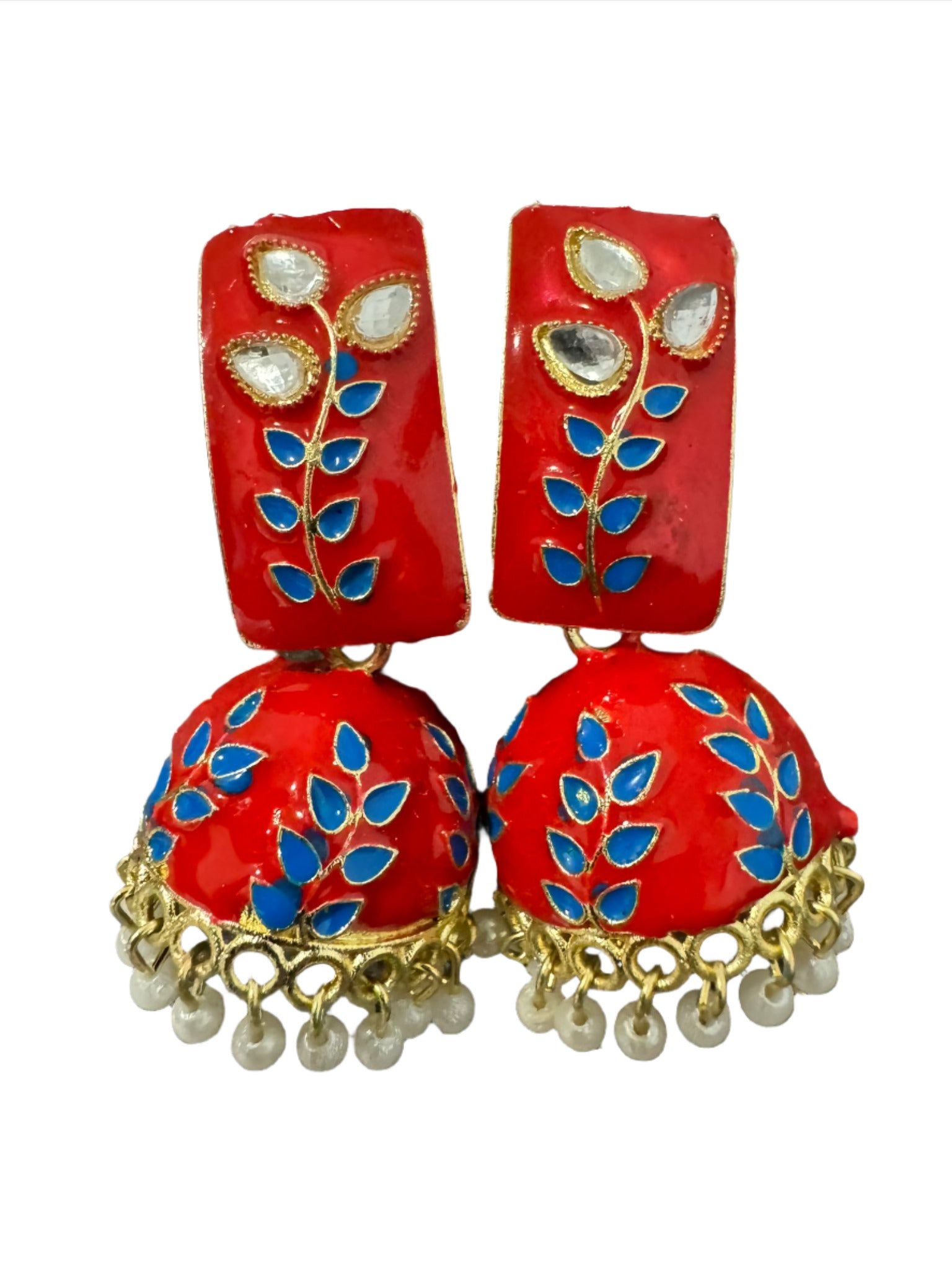 Floral Handcrafted Enamel Kundan Pearl Jhumki Earrings for Women