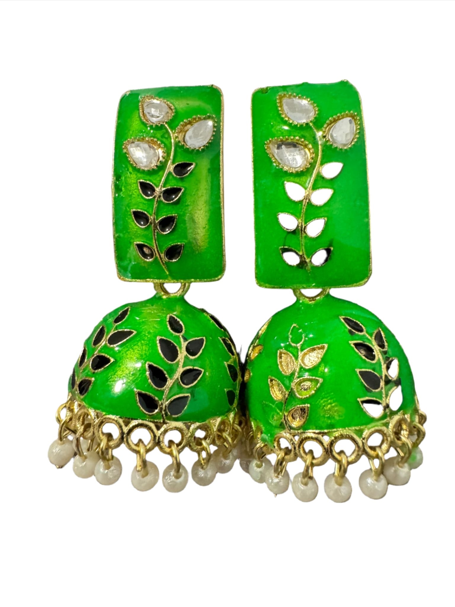 Floral Handcrafted Enamel Kundan Pearl Jhumki Earrings for Women