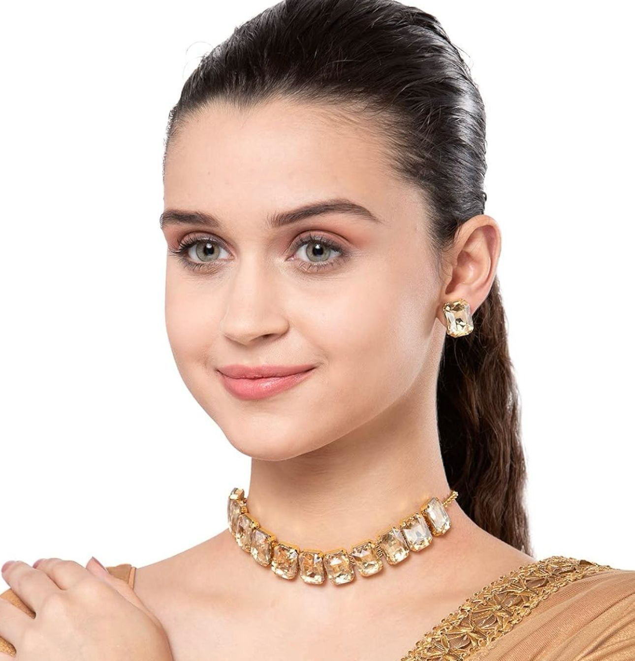 Golden Choker Crystal Earrings Necklace in Frankfurt