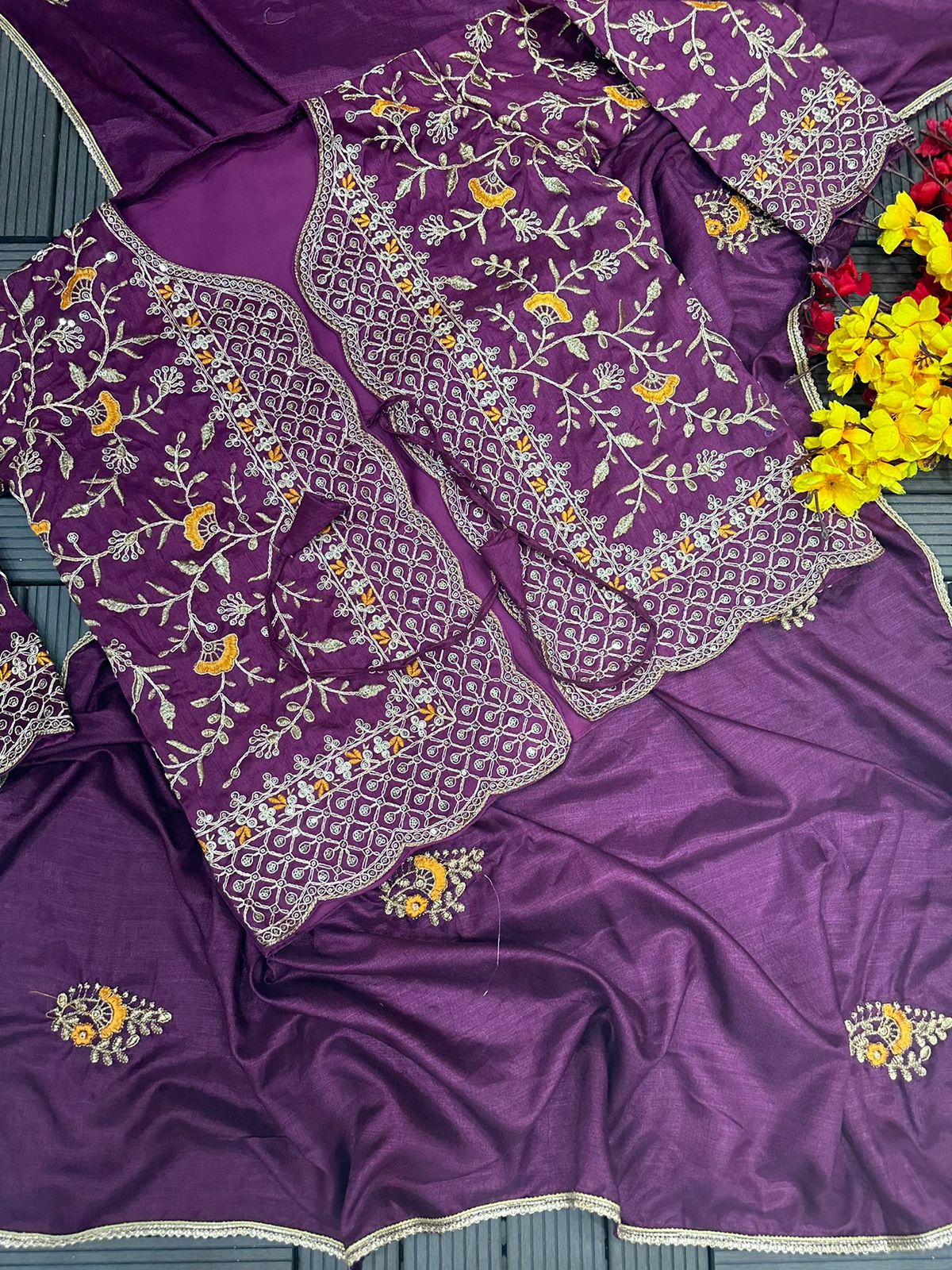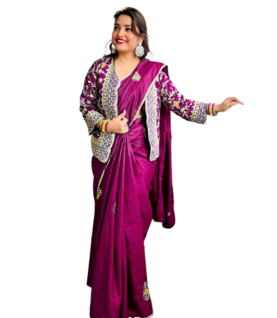 New Super Trending Embroidery cording work ready to wear saree with full koti