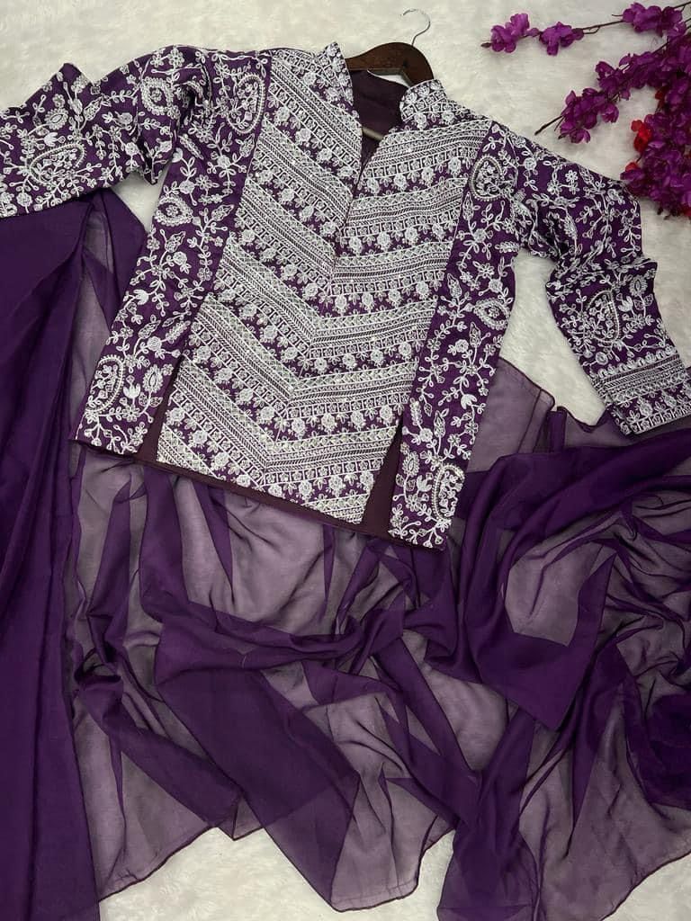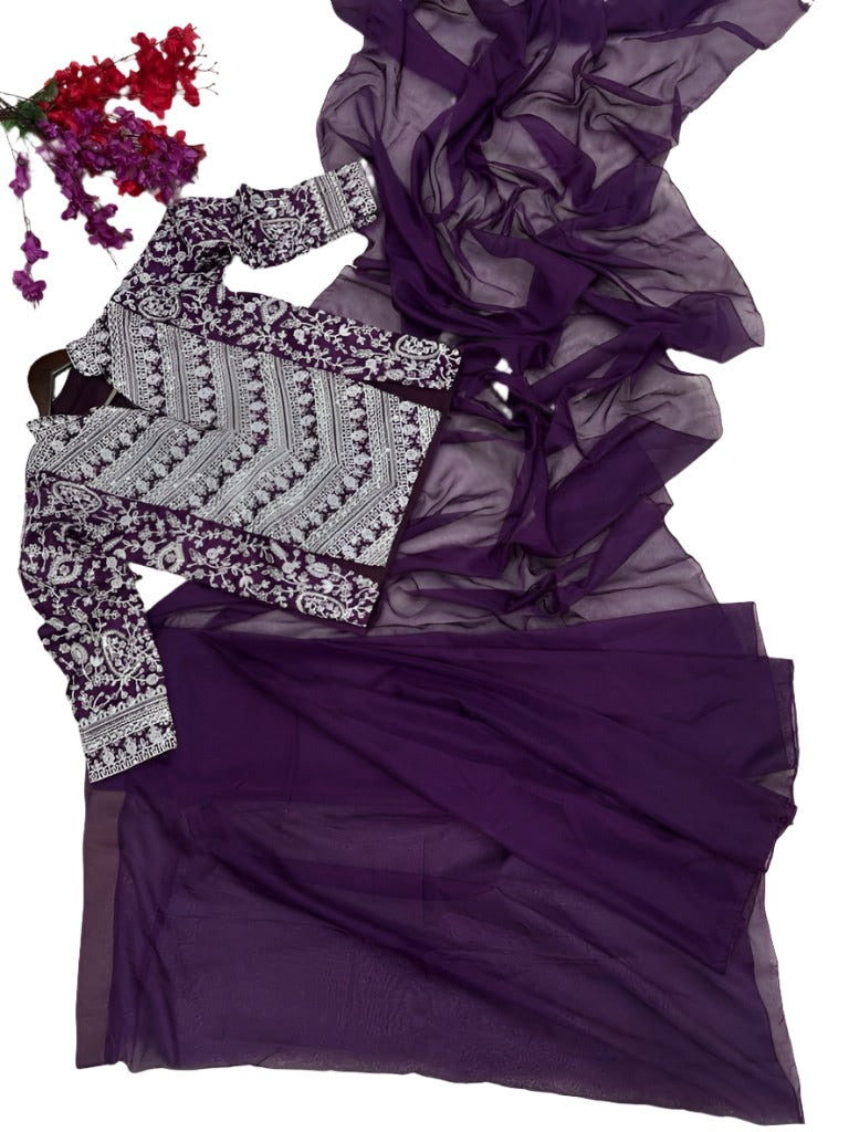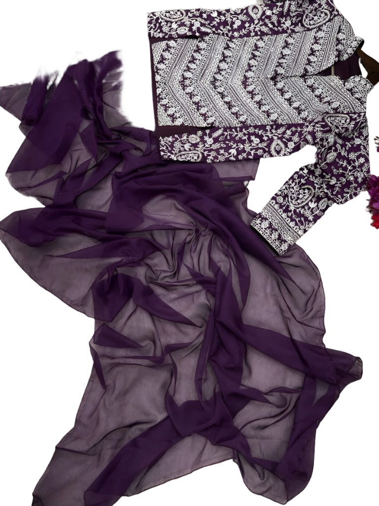 New Super Trending Embroidery cording work ready to wear saree with full Long Blouse