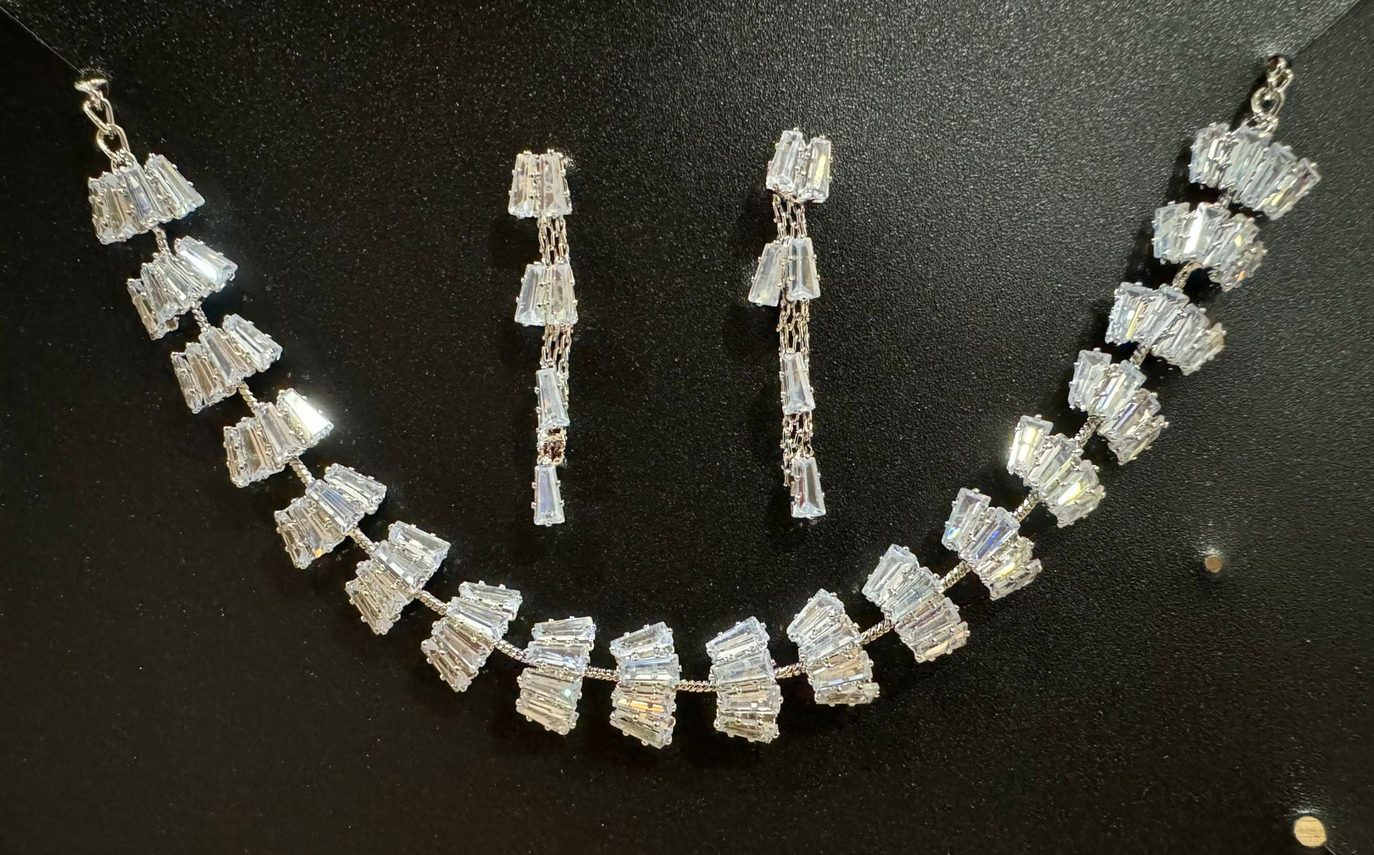 Silver-toned and Matching necklace, has CZ stone-studded detailing, secured with an adjustable drawstring closure