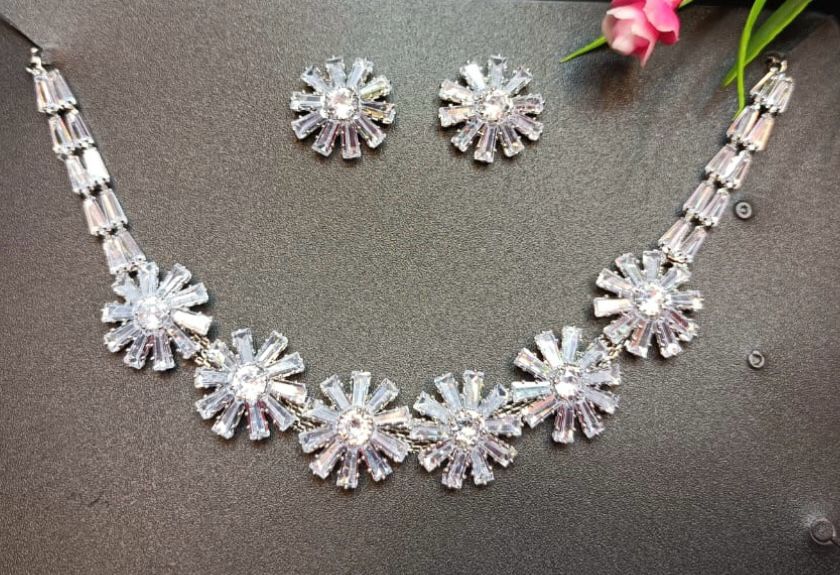 Silver-Plated & White CZ-Studded Jewellery Set