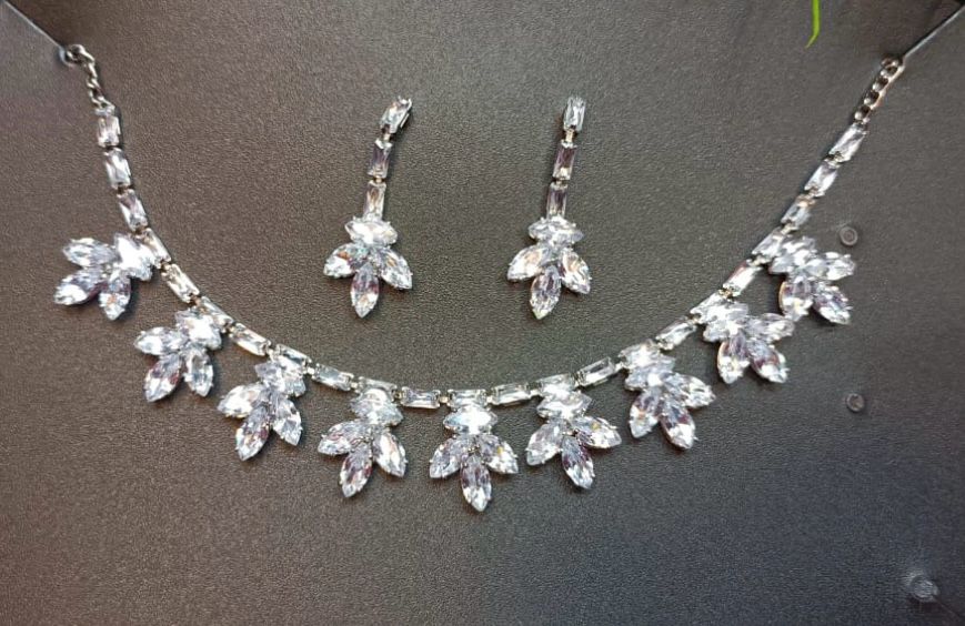 Silver-toned and Matching necklace, has CZ stone-studded detailing, secured with an adjustable drawstring closure