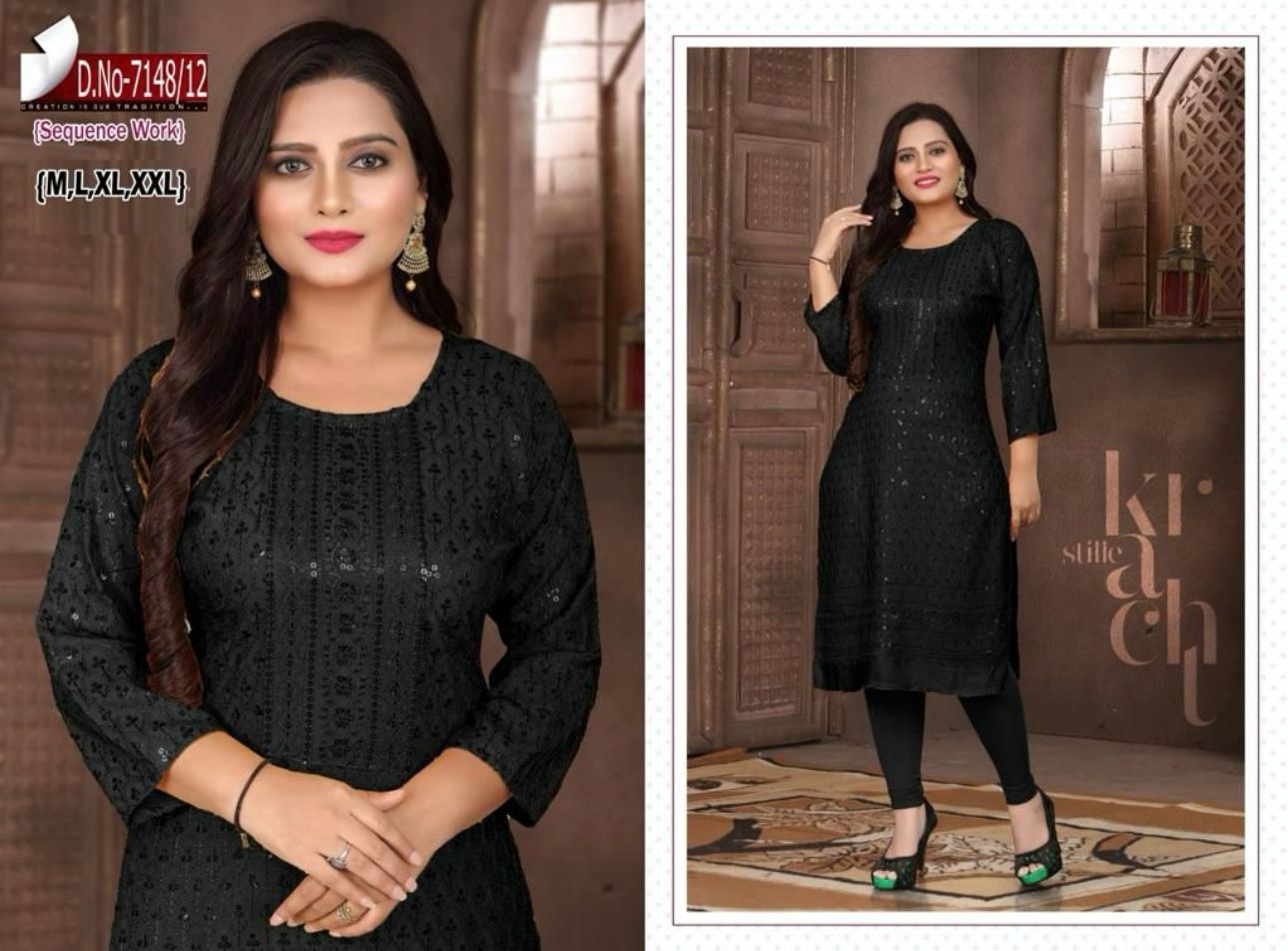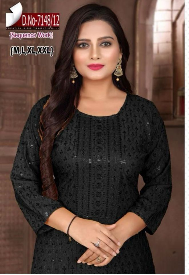 Women Black Embroidered with Sequence Chikankari Straight Kurta