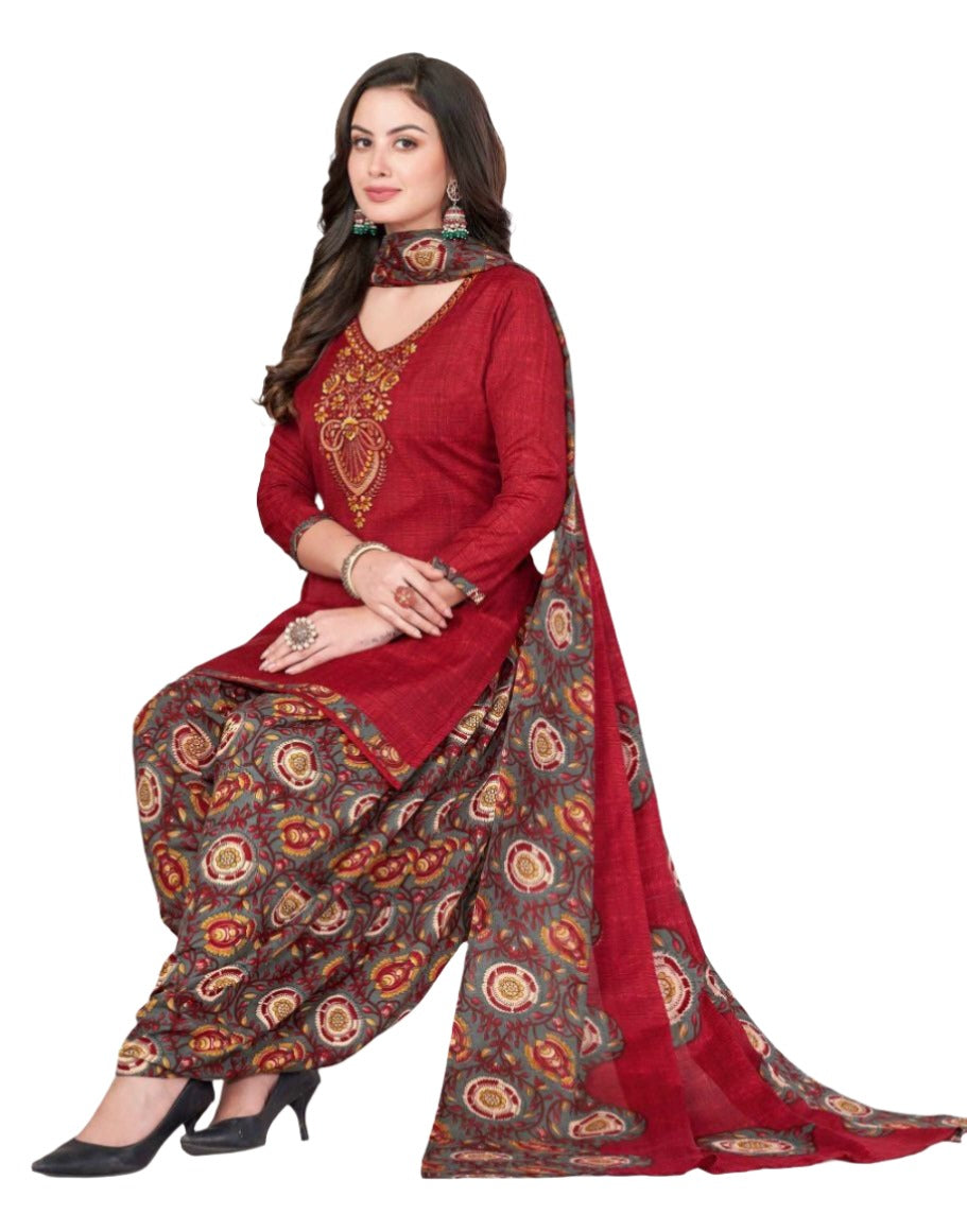 Women Printed Thread Work Pure Cotton Kurta with Patiala & With Dupatta