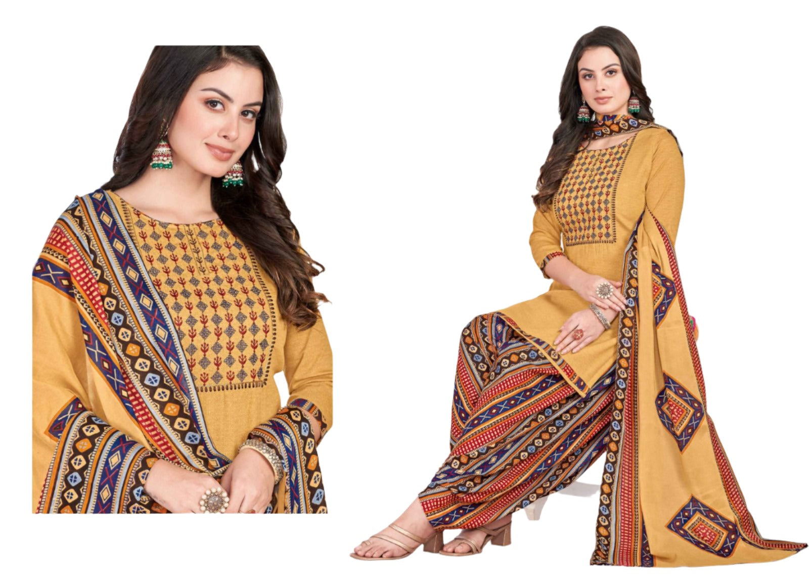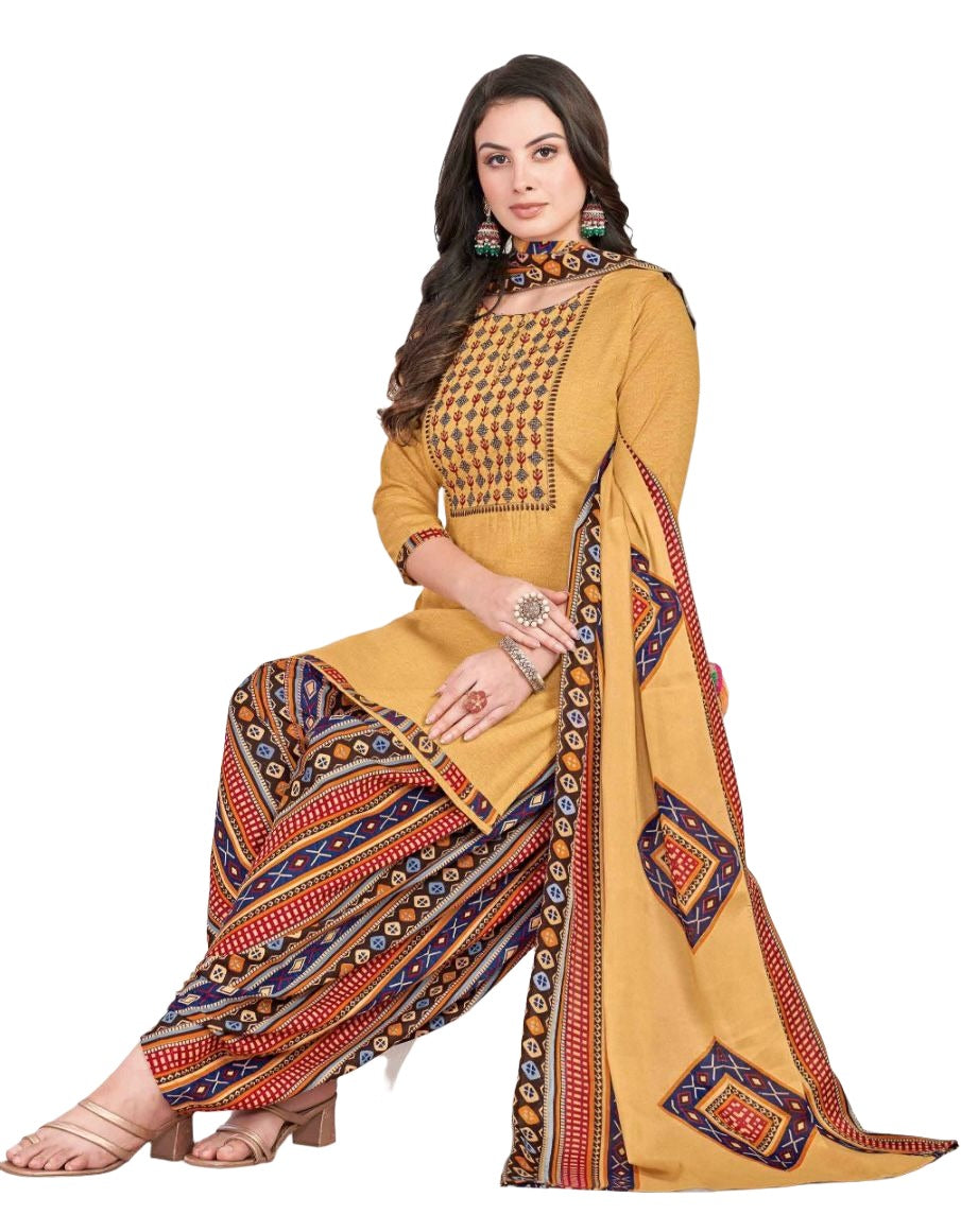 Women Printed Thread Work Pure Cotton Kurta with Patiala & With Dupatta