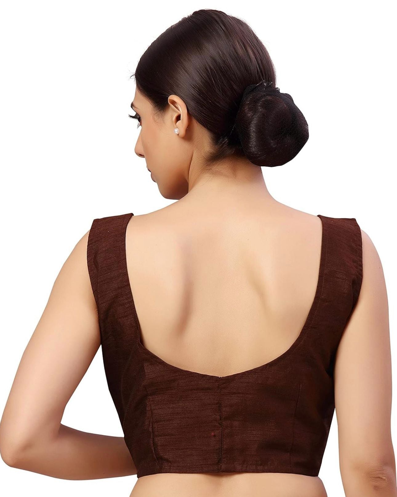 Women's Readymade Art Silk Sleeveless Saree Blouse(Brown)