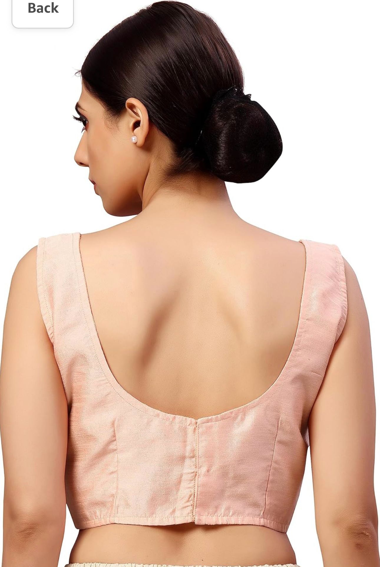 Women's Readymade Art Silk Sleeveless Saree Blouse(Peach)