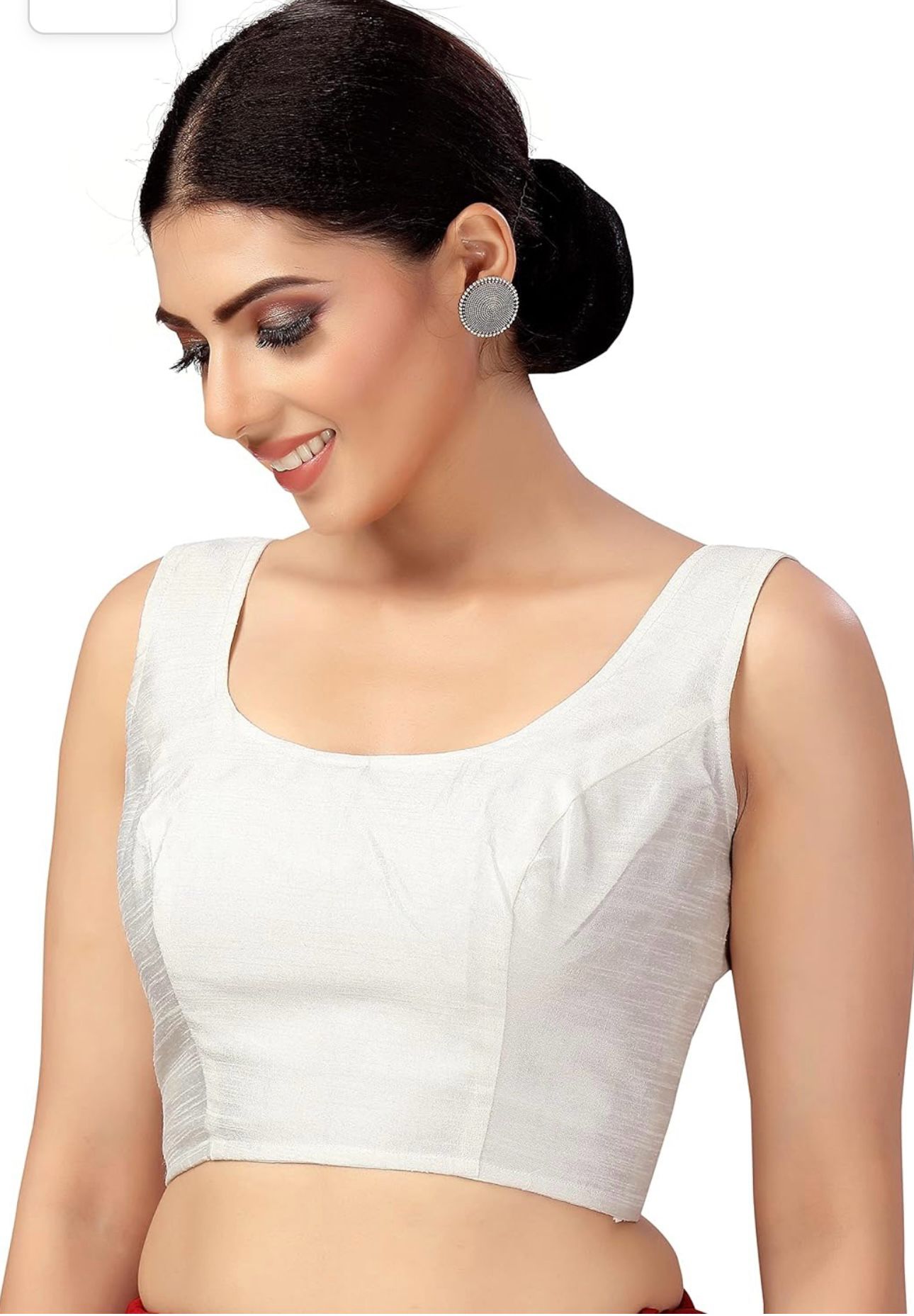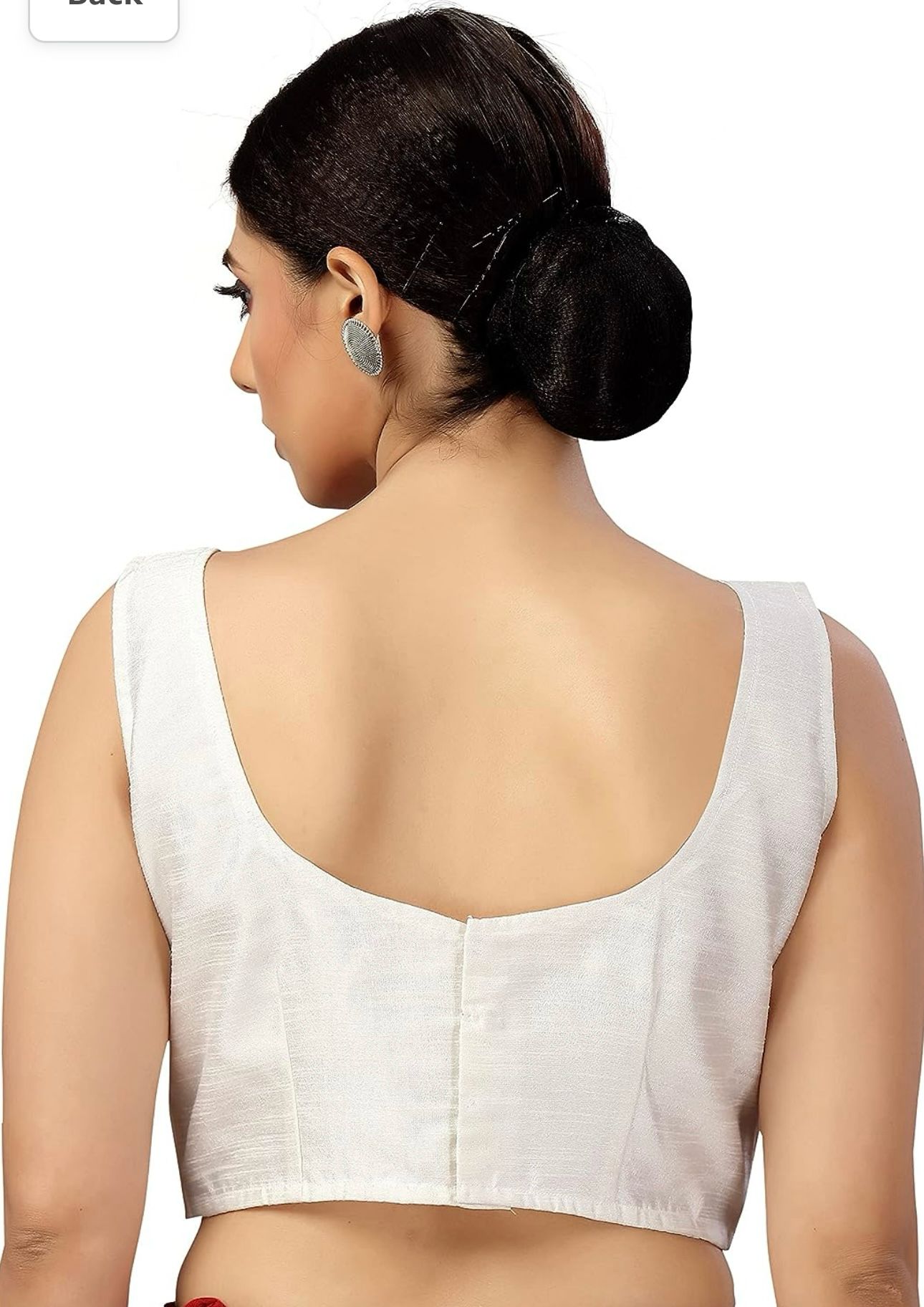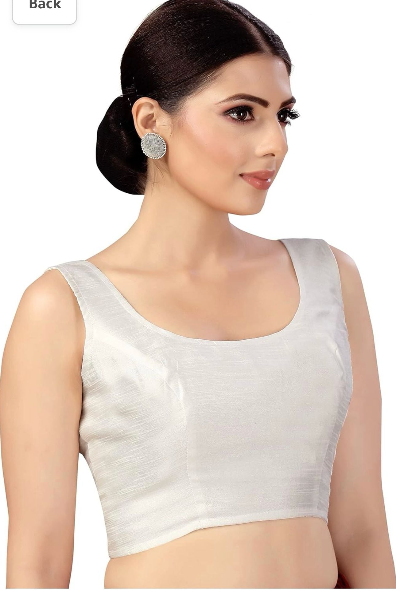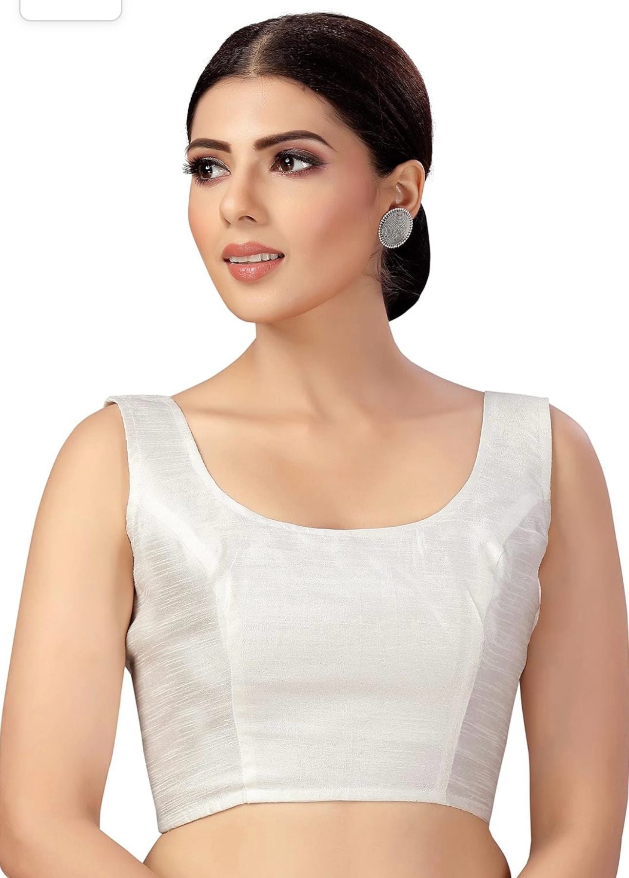 Women's Readymade Art Silk Sleeveless Saree Blouse(White)