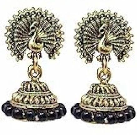 Women's Traditional Gold Ethnic Antique South Indian Round Pearl Moti Feather Peacock Jhumka Earrings