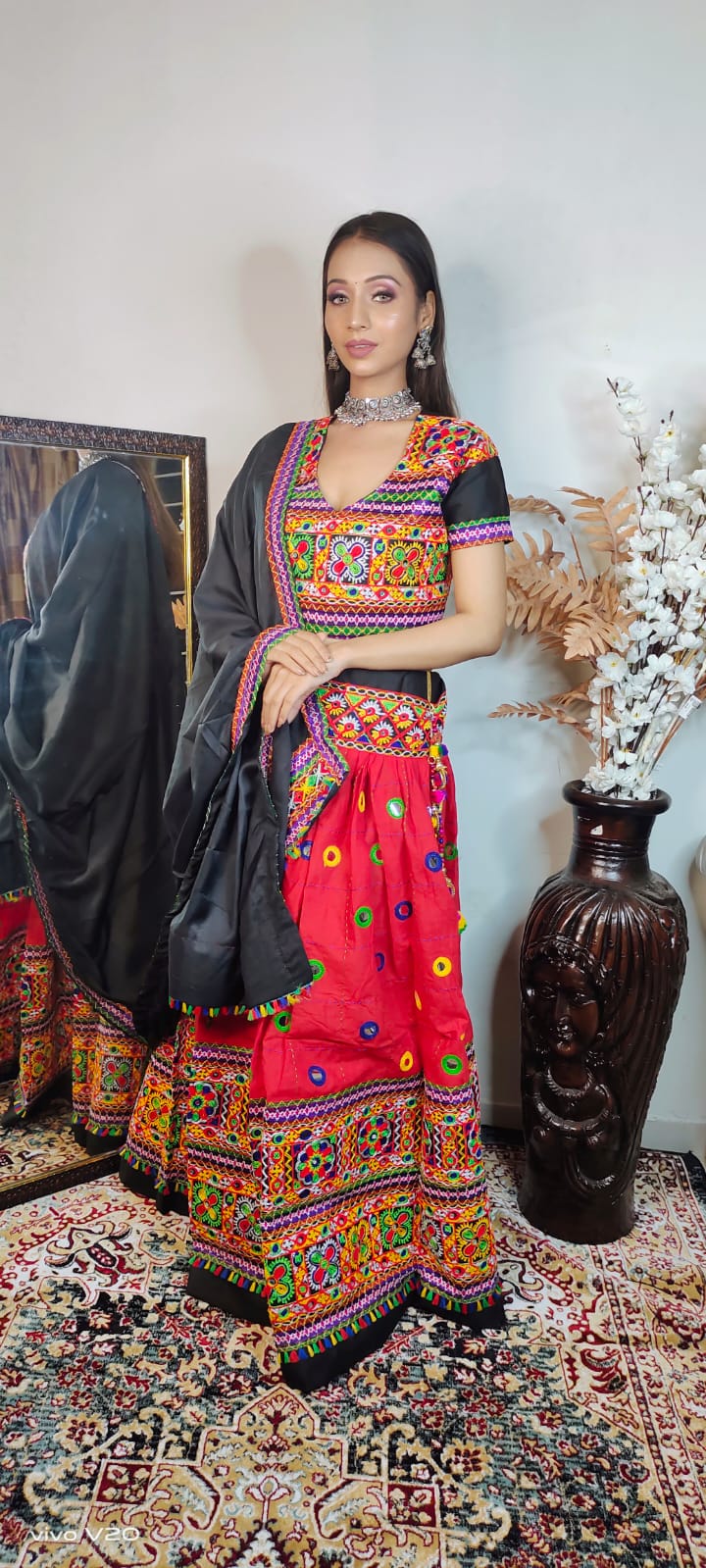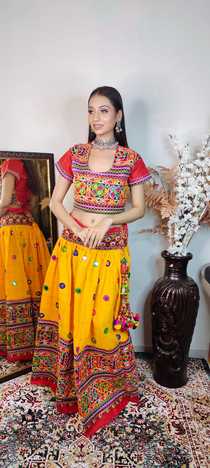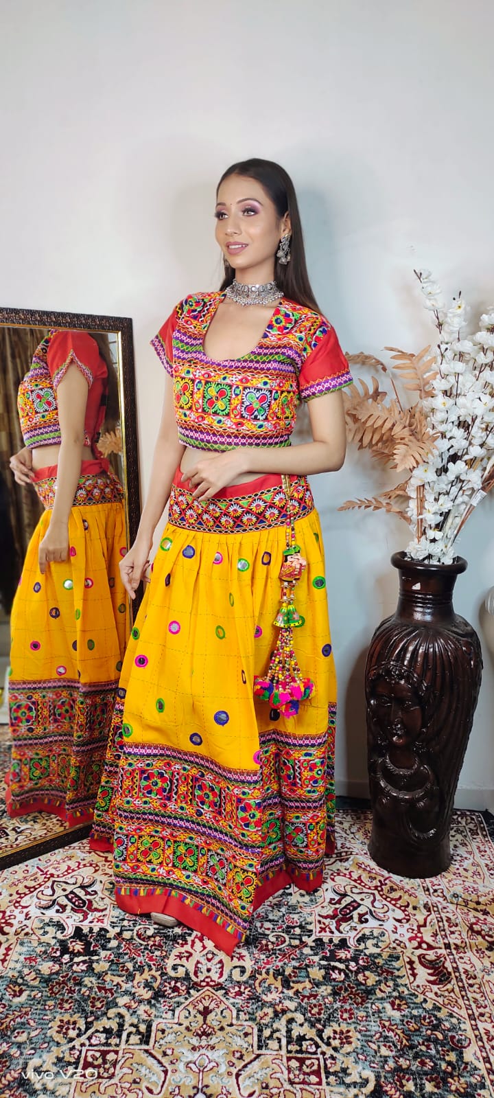 - Navratri Wear Chaniya Choli-Kutch Embroidered Original Mirror Work Lehenga Choli -Garba style/ Gujarati style/ kutchi style