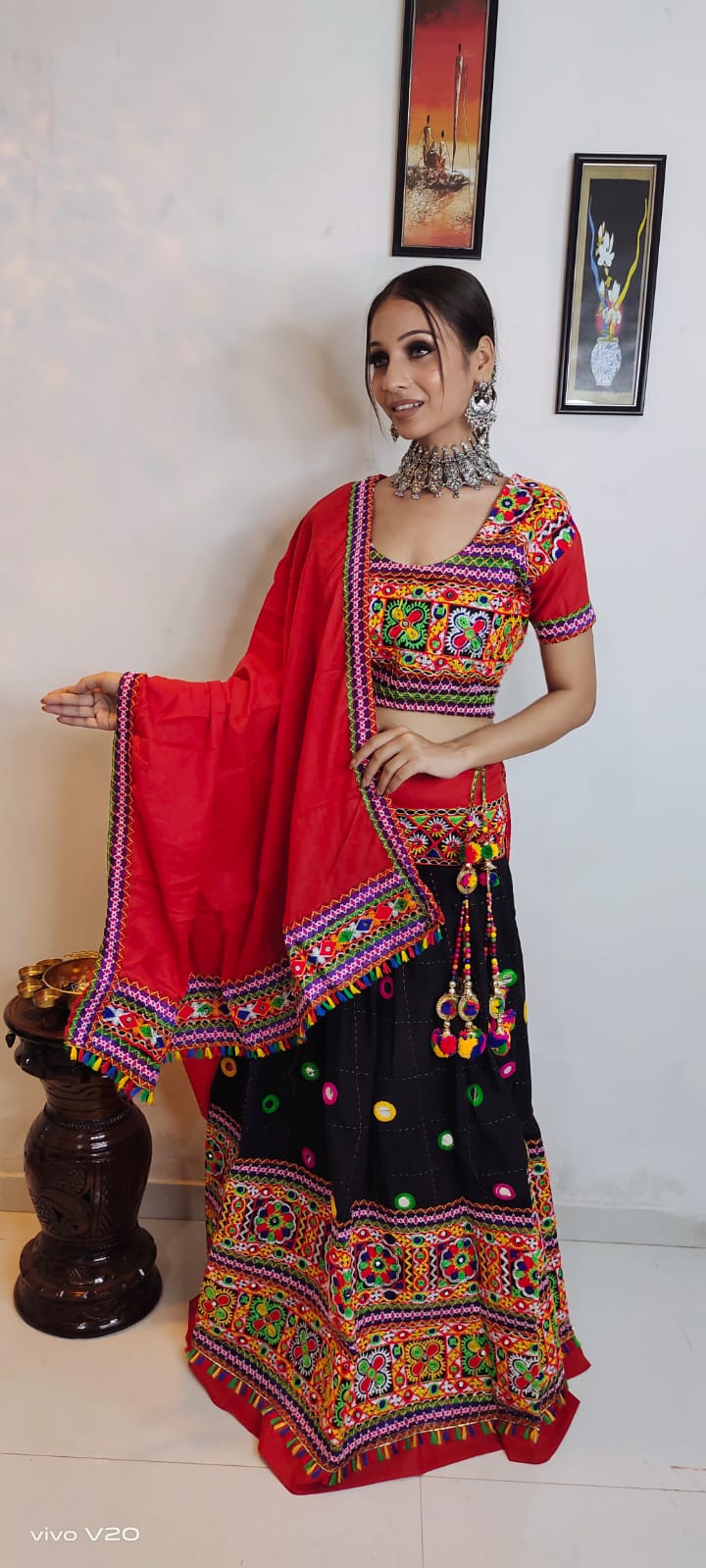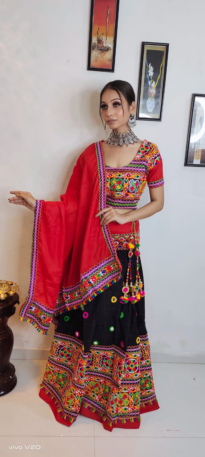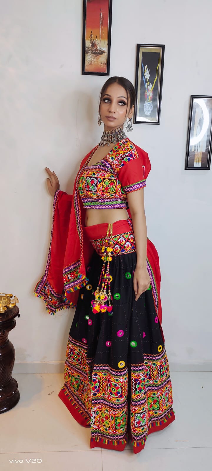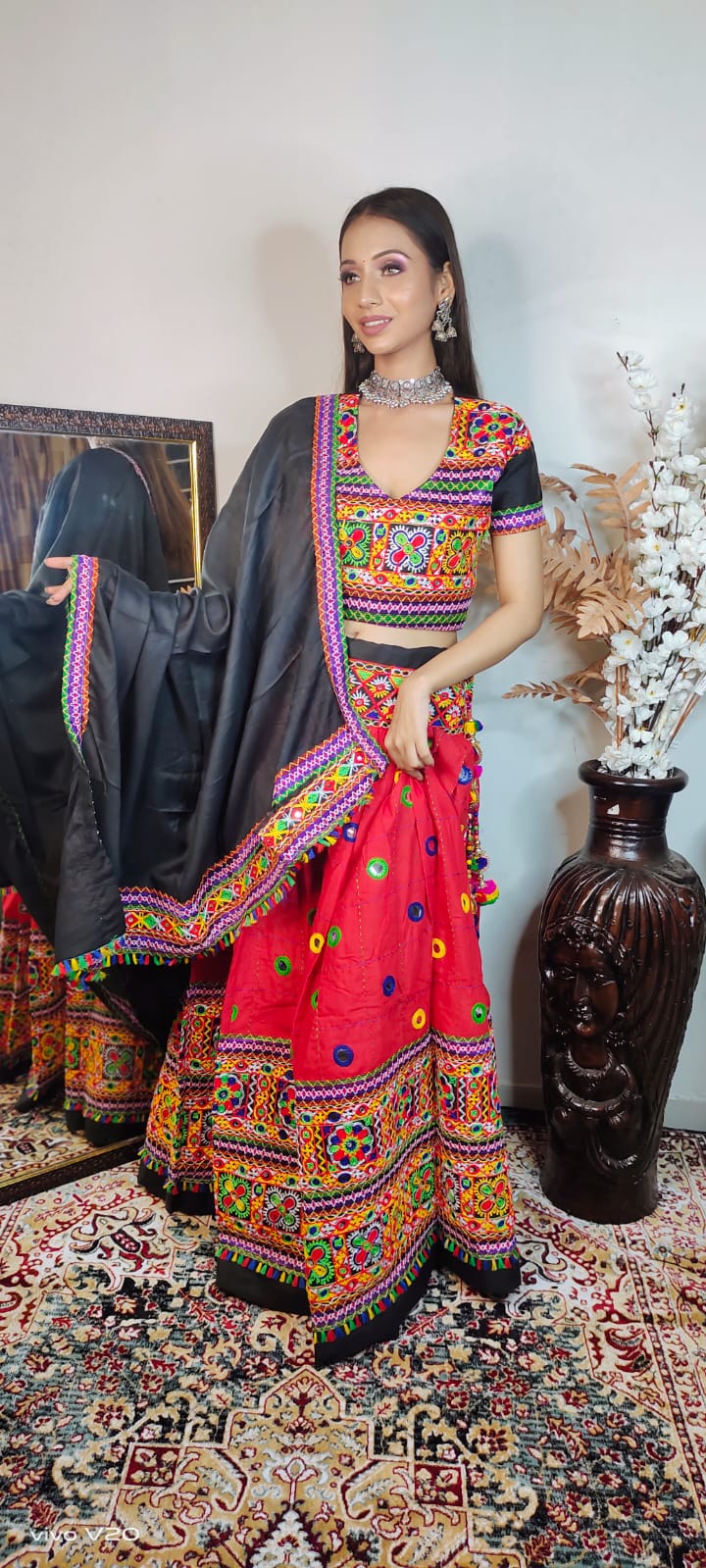 - Navratri Wear Chaniya Choli-Kutch Embroidered Original Mirror Work Lehenga Choli -Garba style/ Gujarati style/ kutchi style