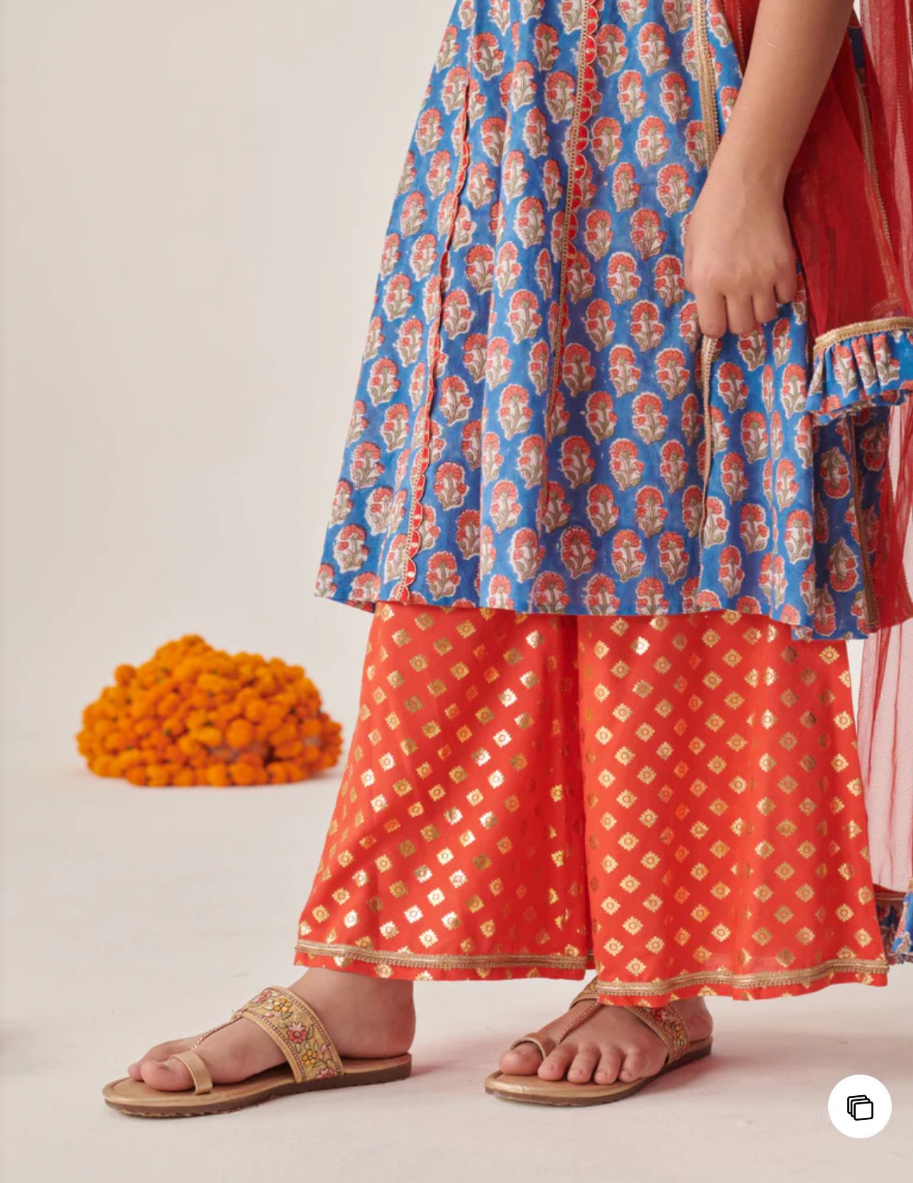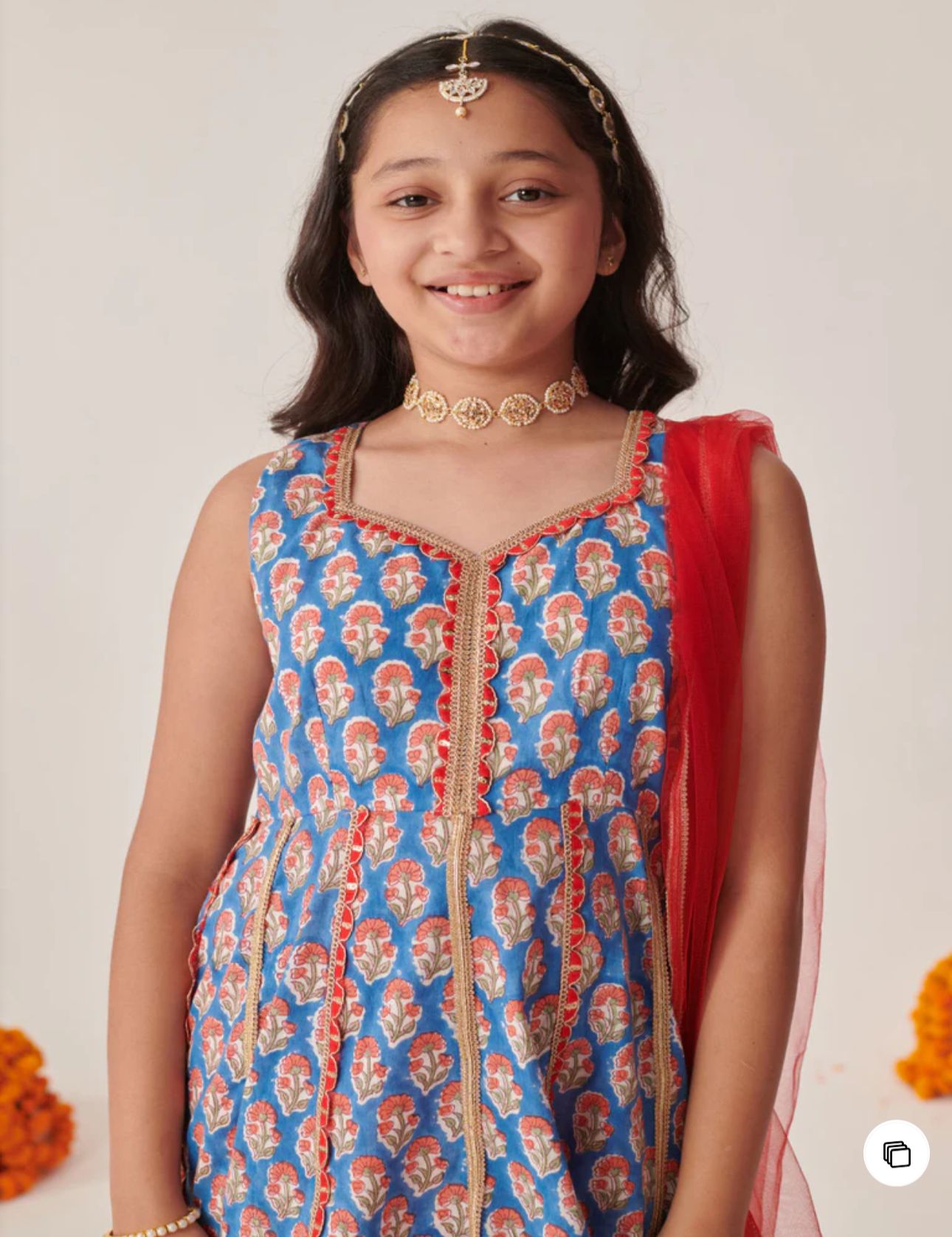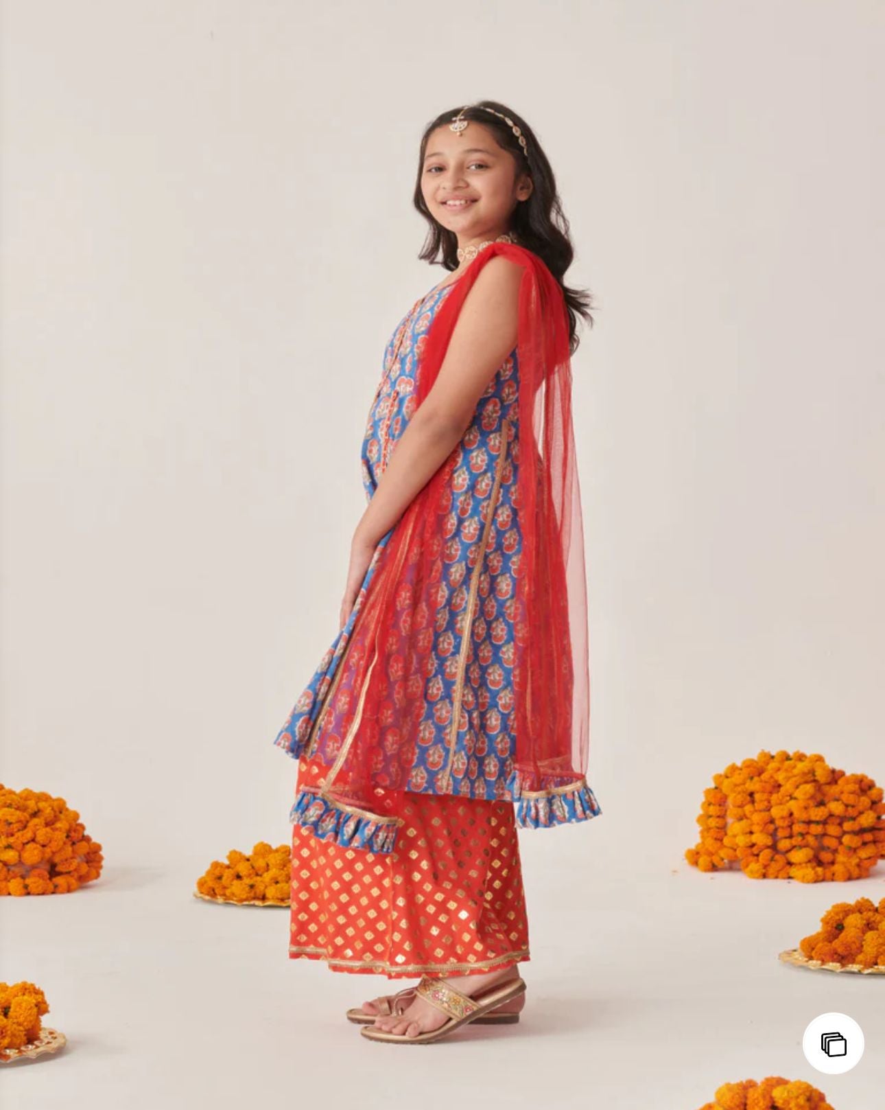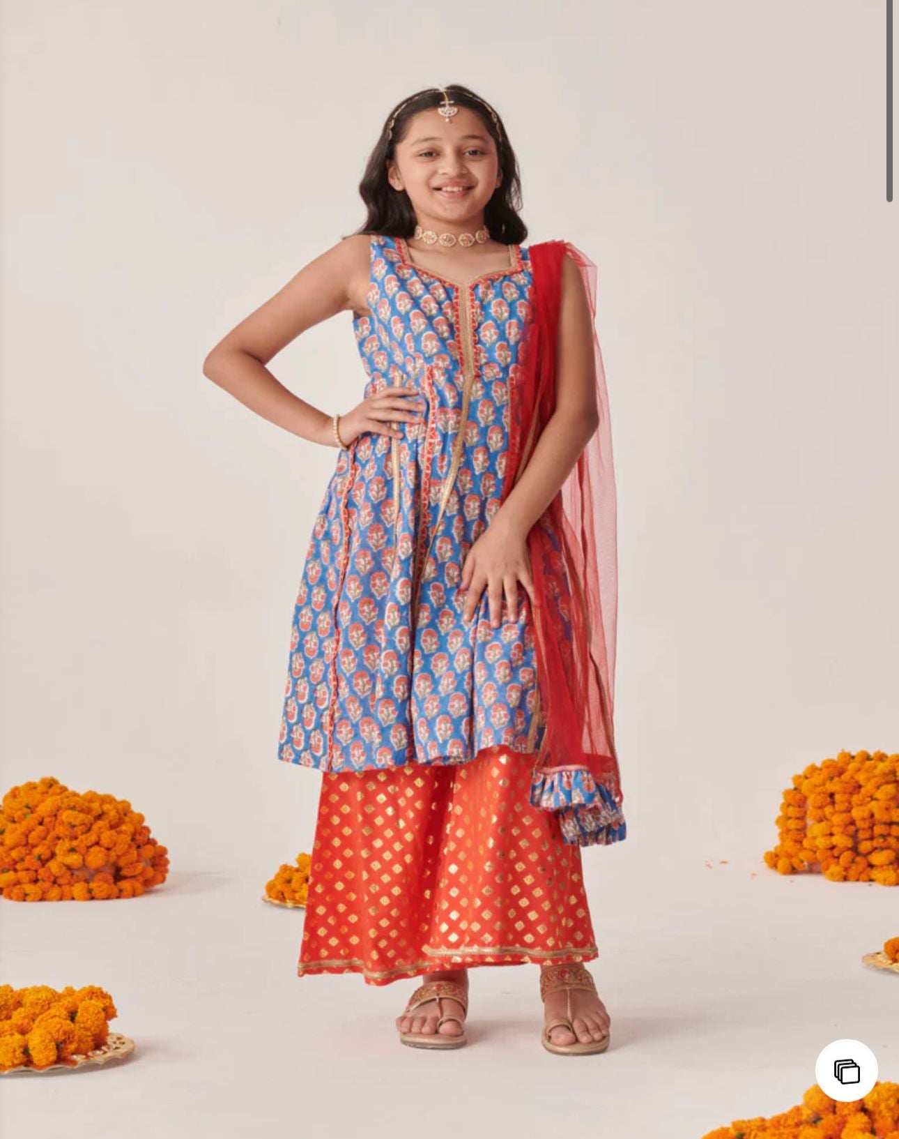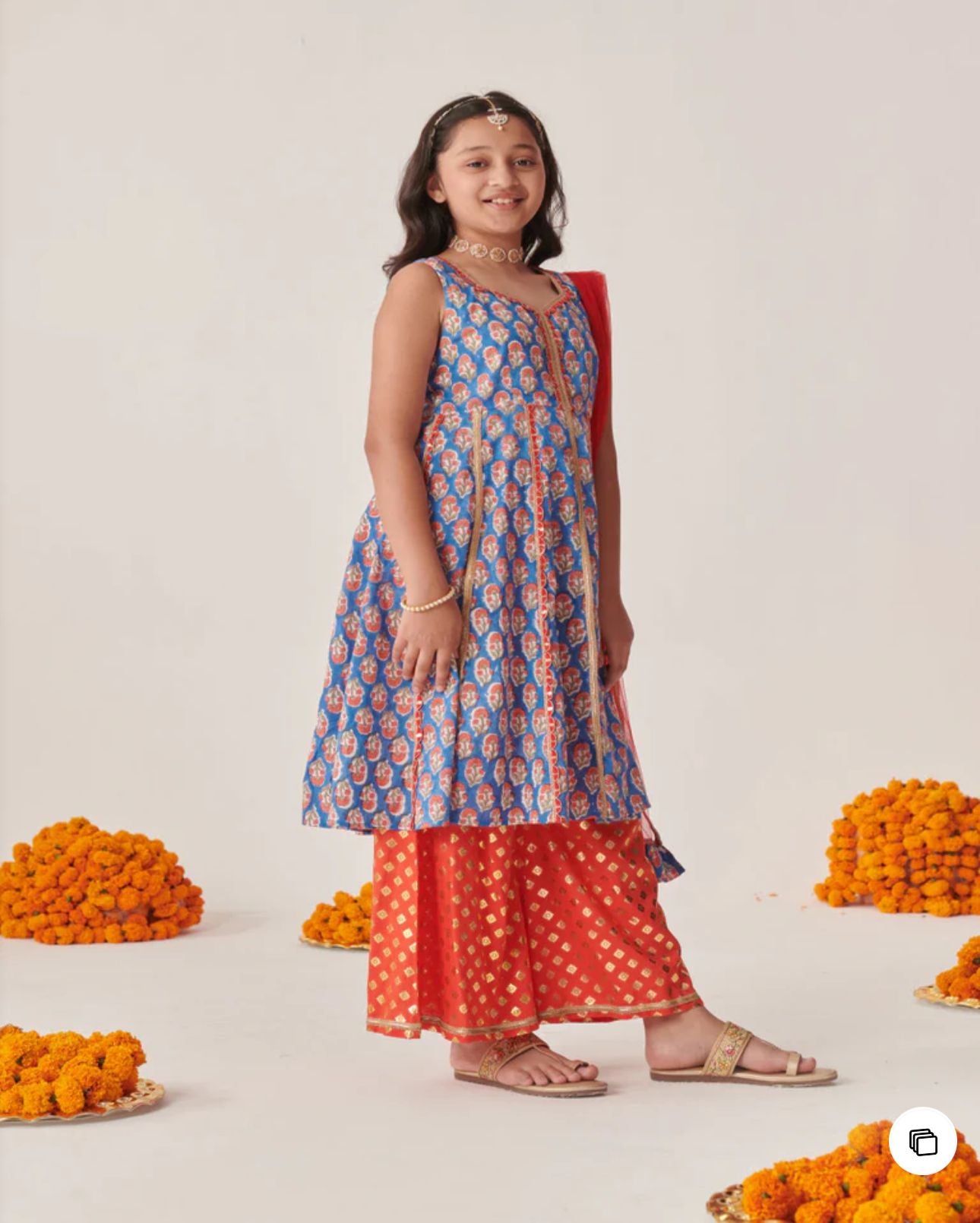Cotton Sleeveless Floral Printed Kurta With Palazzo & Dupatta in Berlin