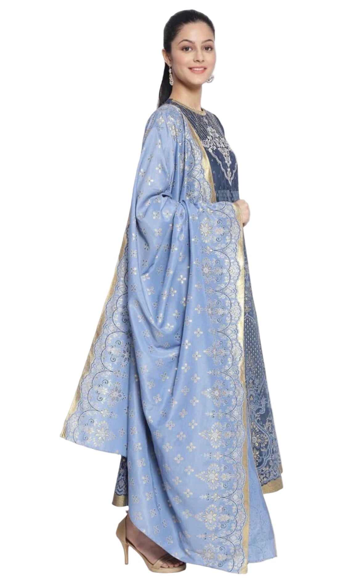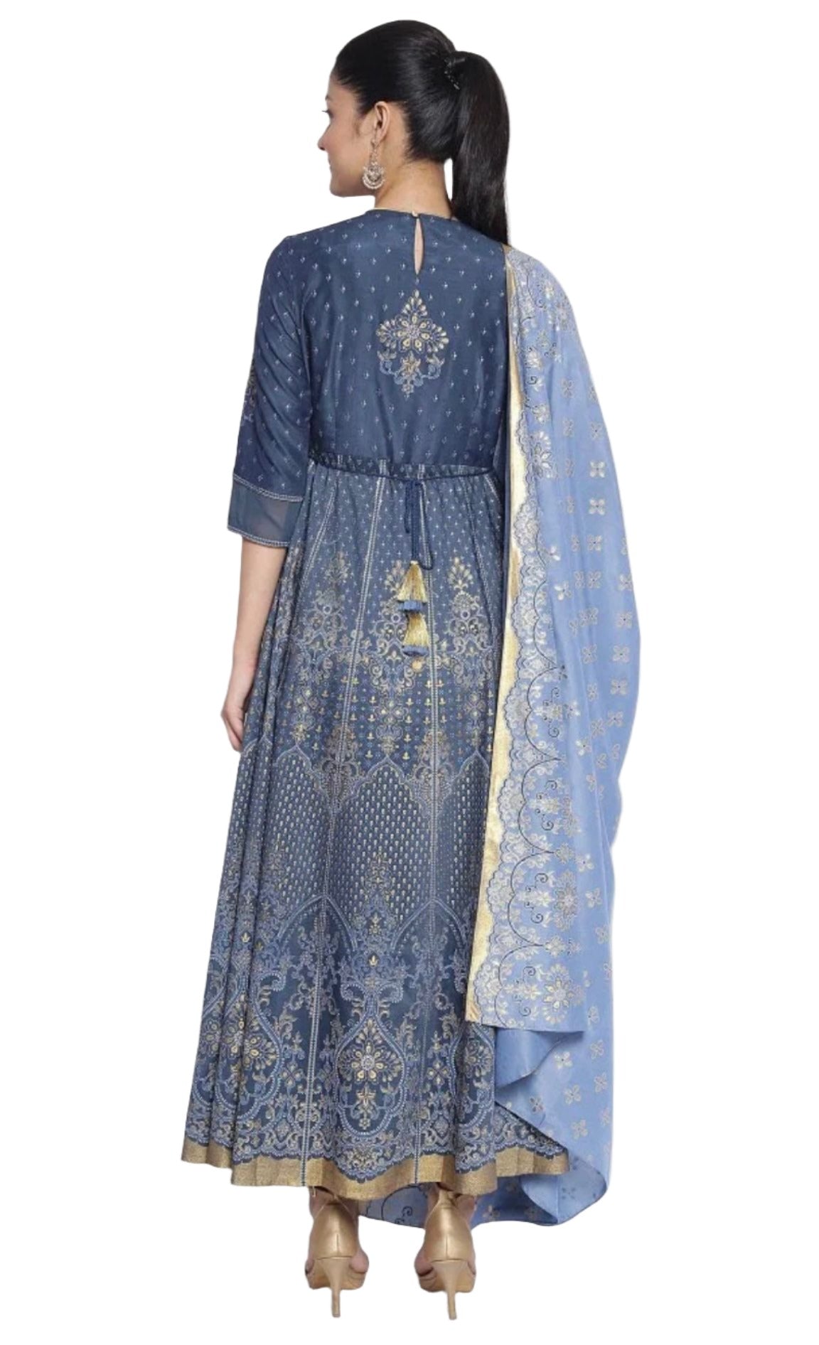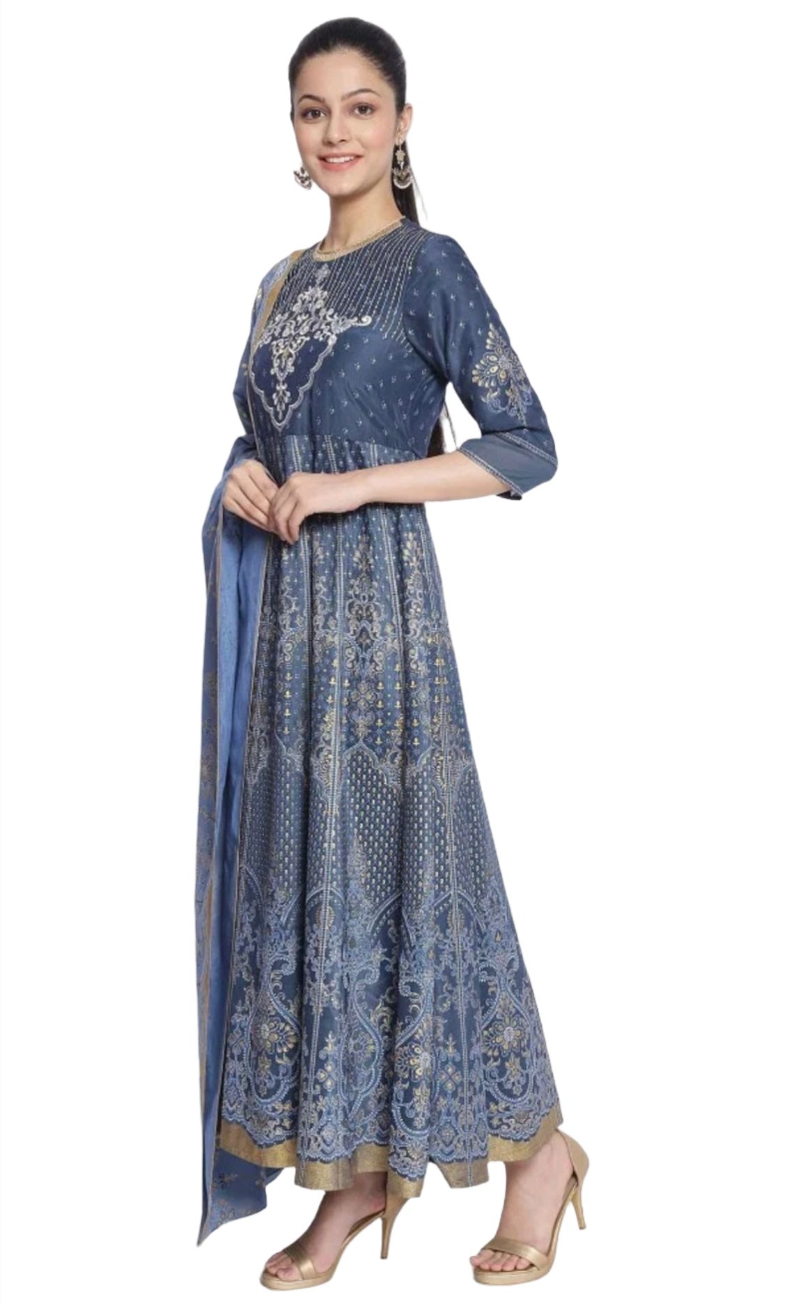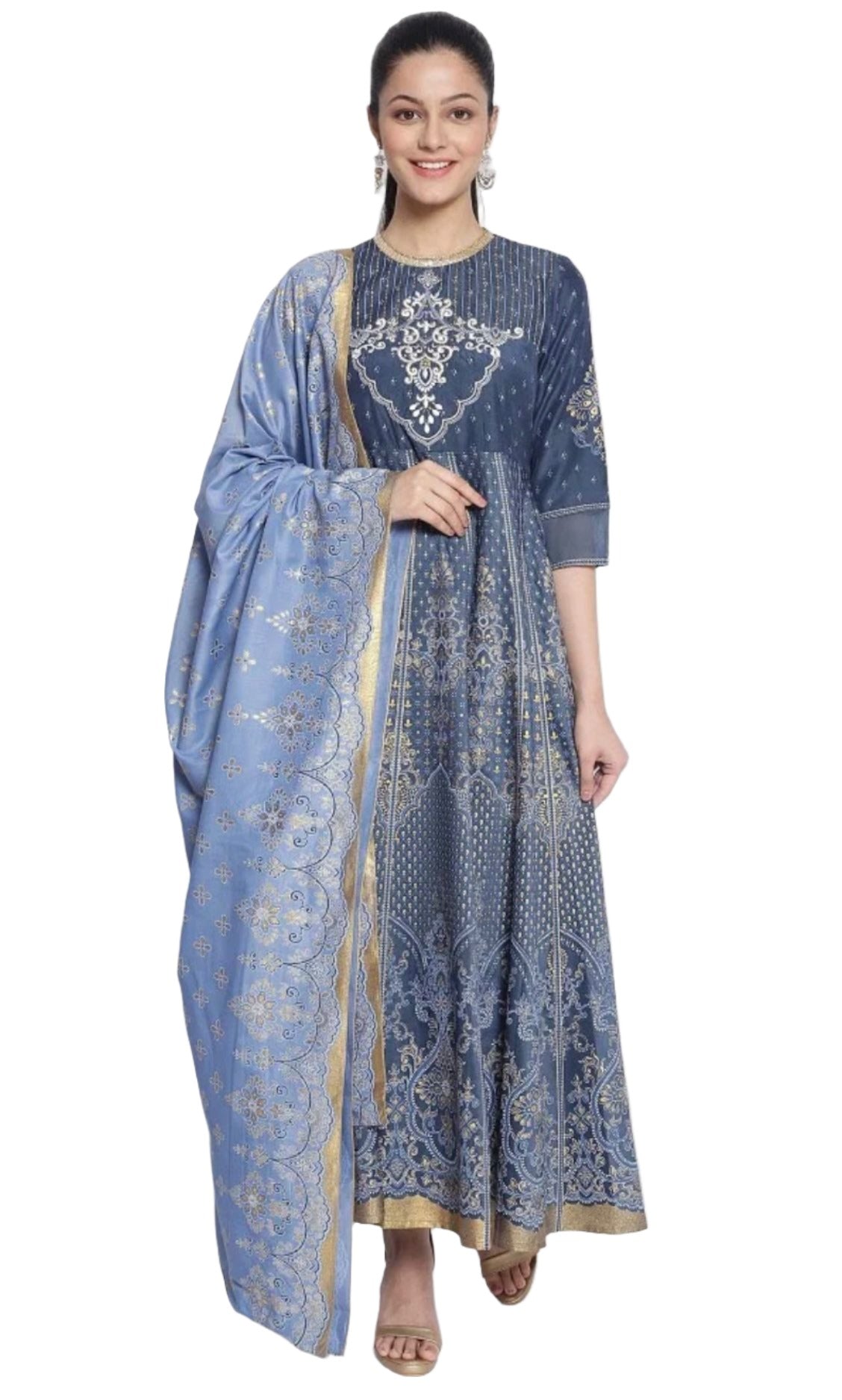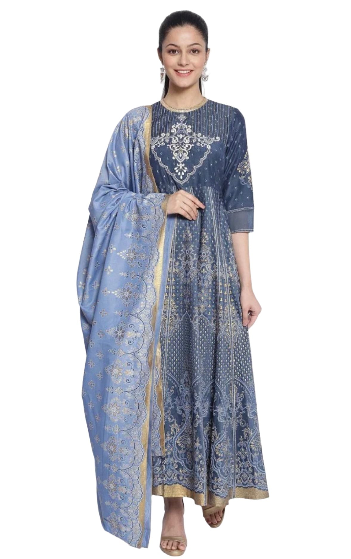 Dark Grey Printed Dress-Dupatta Set in Paris