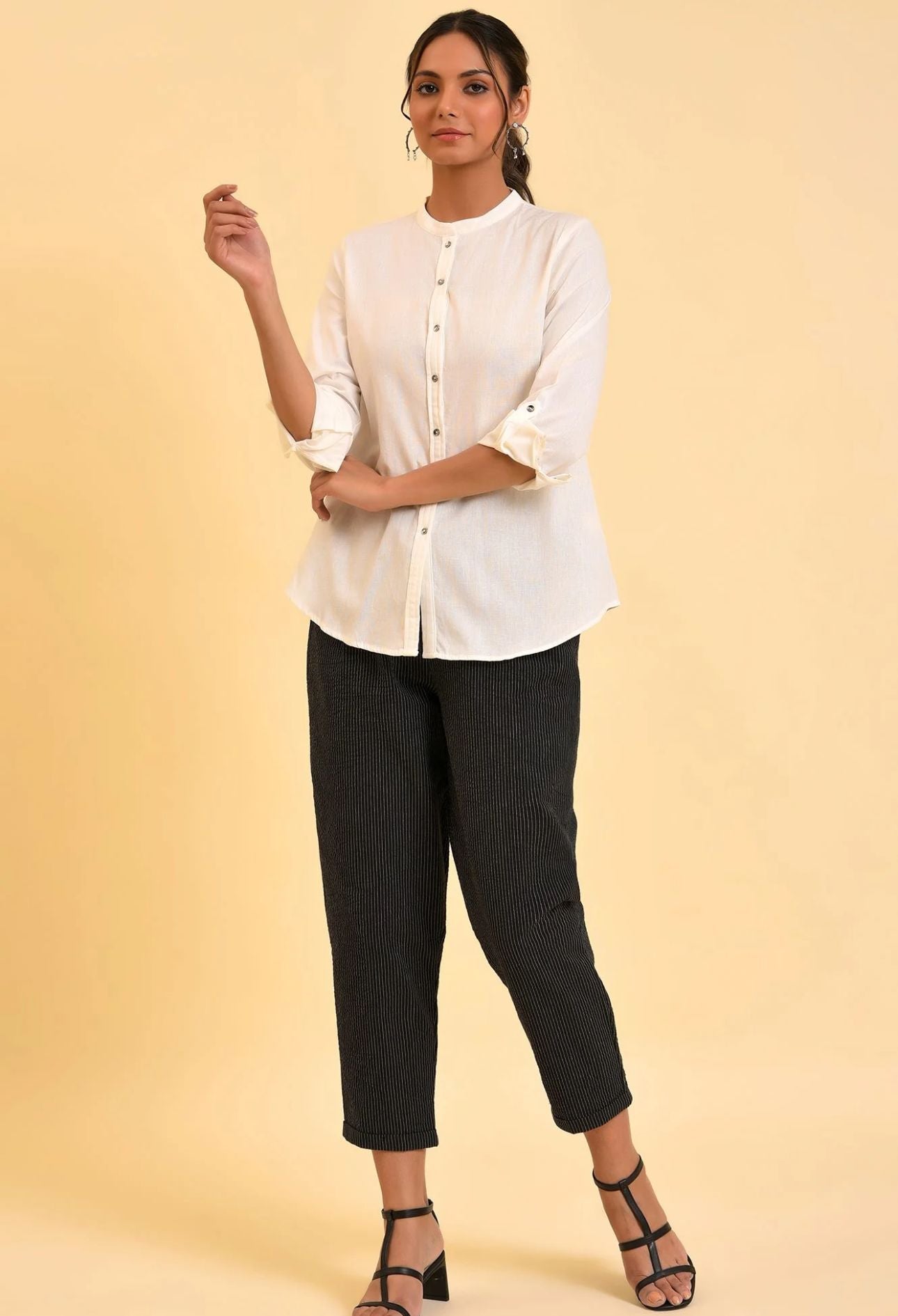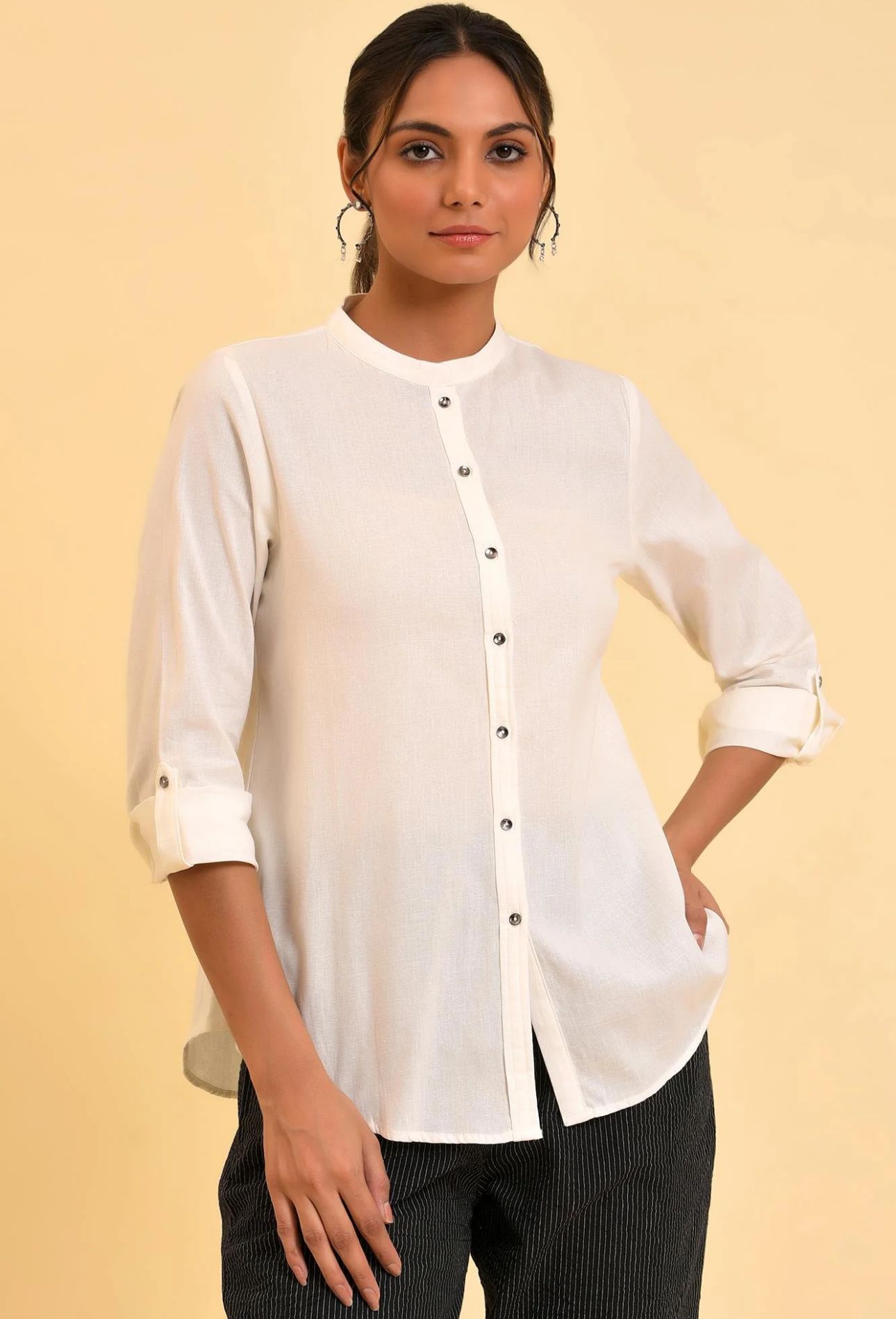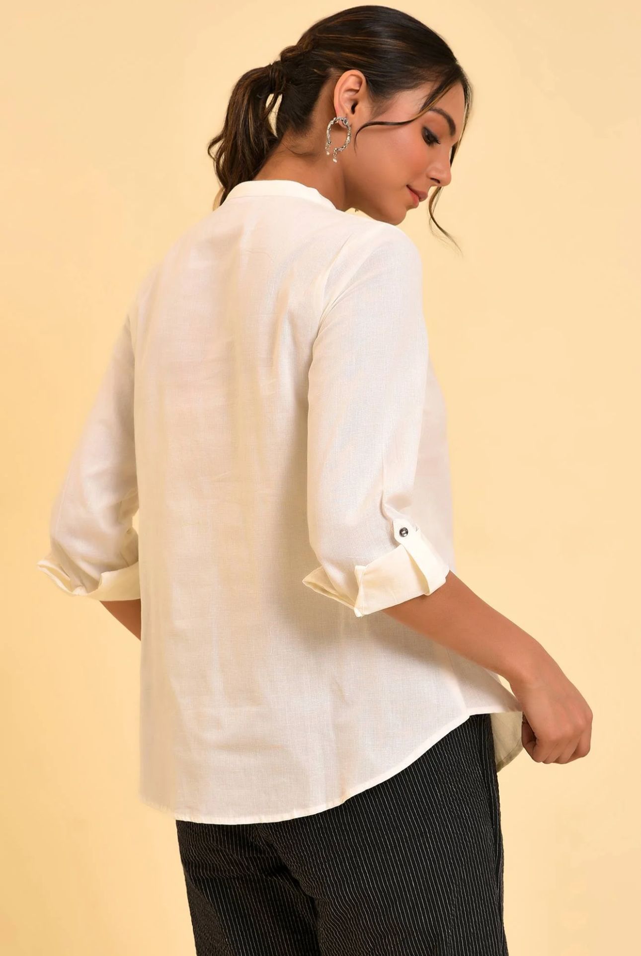 Ecru Cotton Flax Button Down Western Top in Berlin